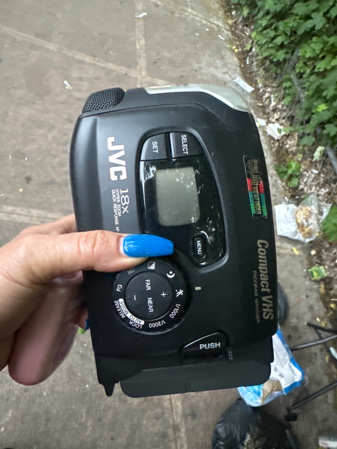 A black JVC camcorder. The body is rectangular. Features several buttons and dials. I hope you enjoy using this camera for your next creative project.