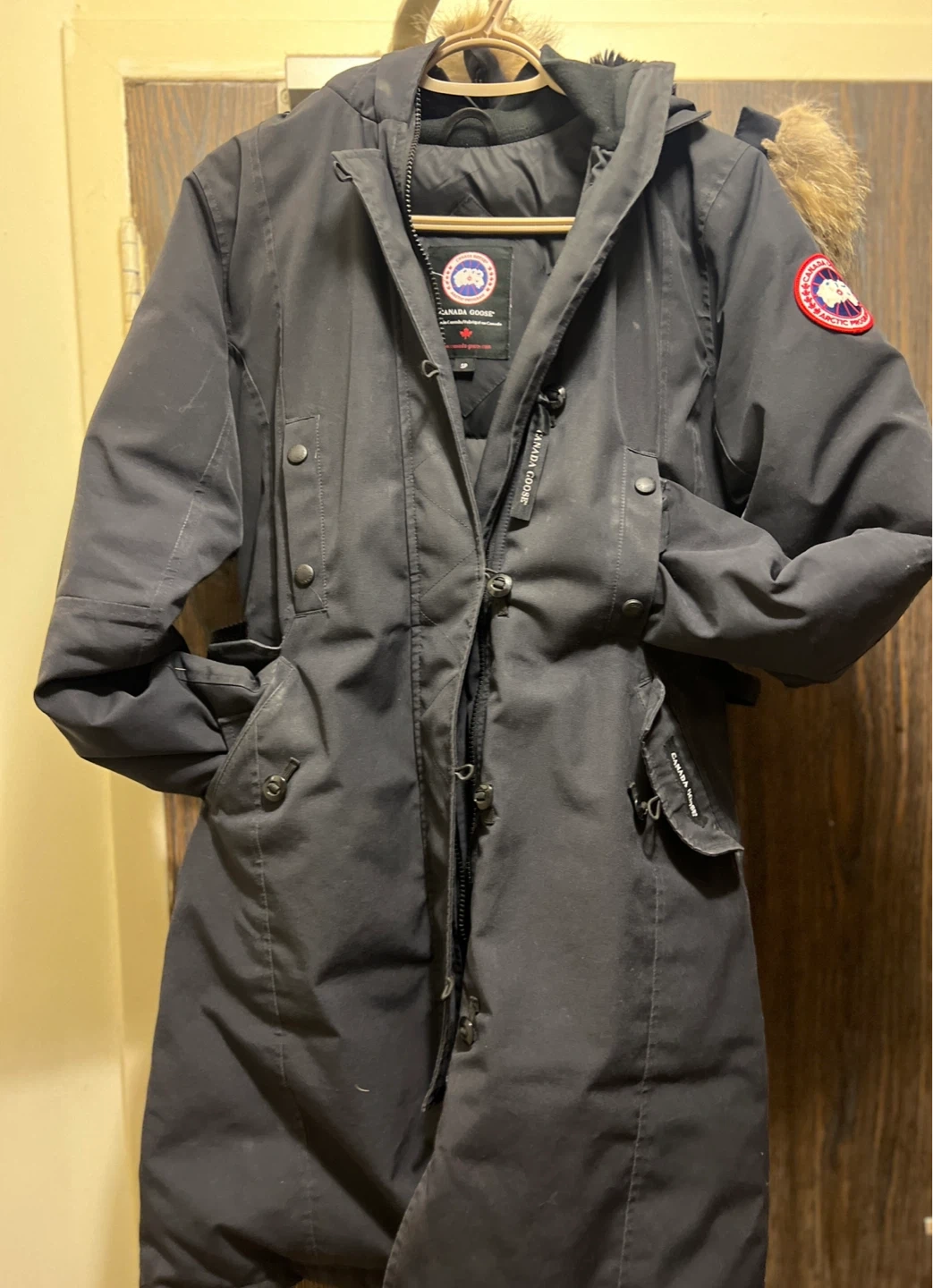 Selling a Canada Goose in size small. It's in good condition and perfect for the Canadian winter! The colour is a dark grey/ black. Feel free to reach out if you have any questions!