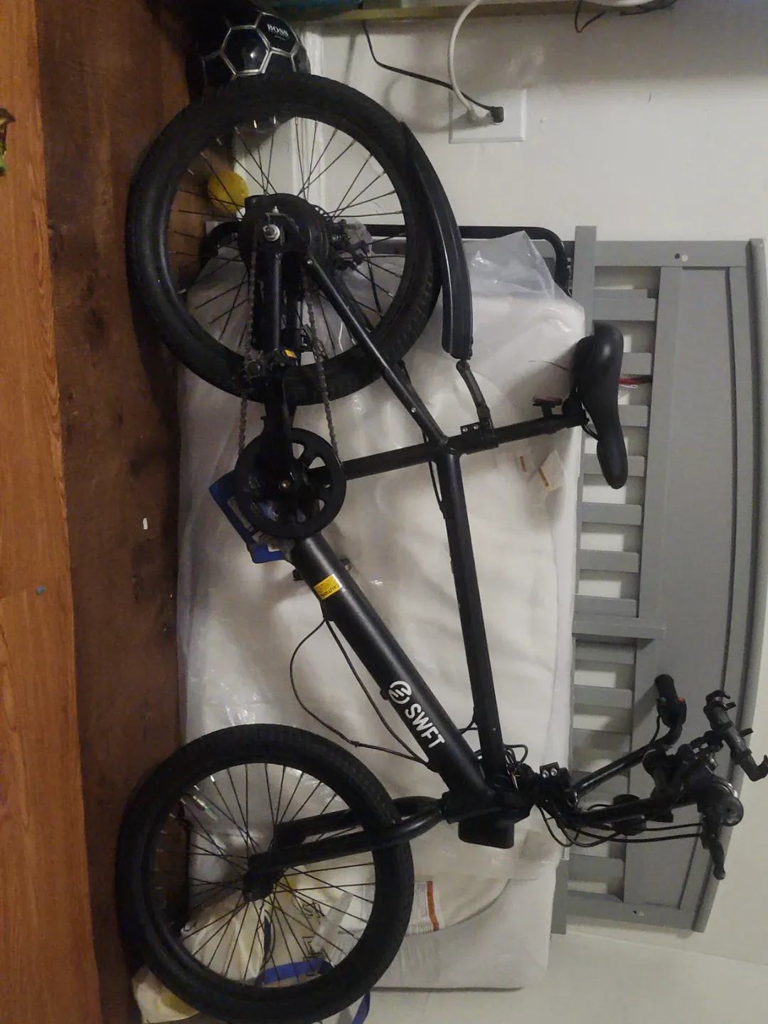 Black SWIFT BMX bike. It's a single-speed bicycle with a coaster brake. Steel frame construction. This bike is great for riders looking for a durable and fun ride!