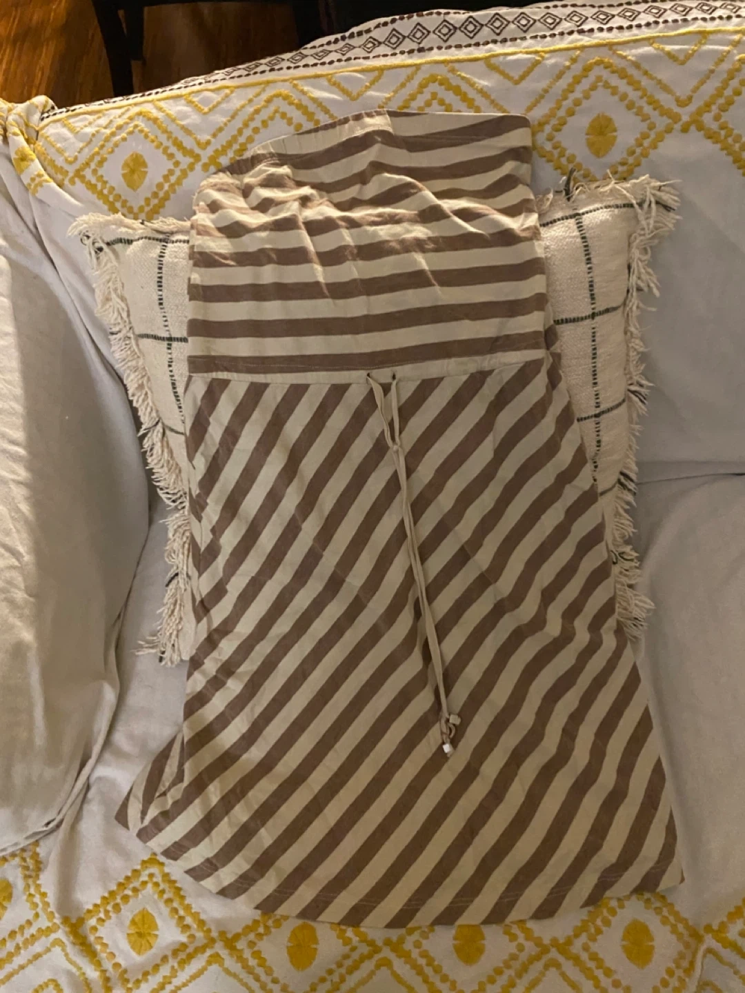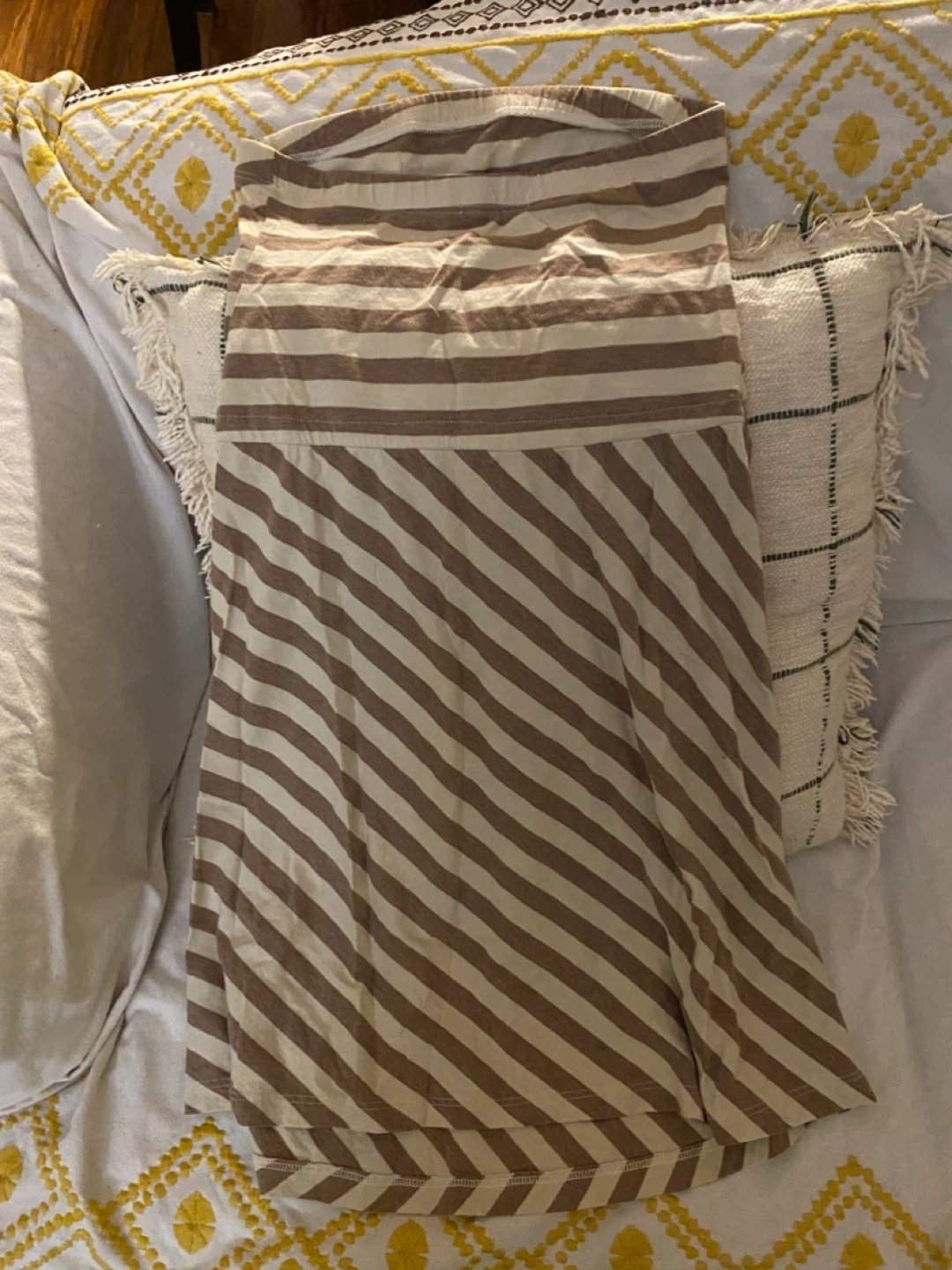 This FishBones strapless maxi dress has a comfy jersey knit. It features a taupe and cream stripe pattern. Elasticated top band for a secure fit.