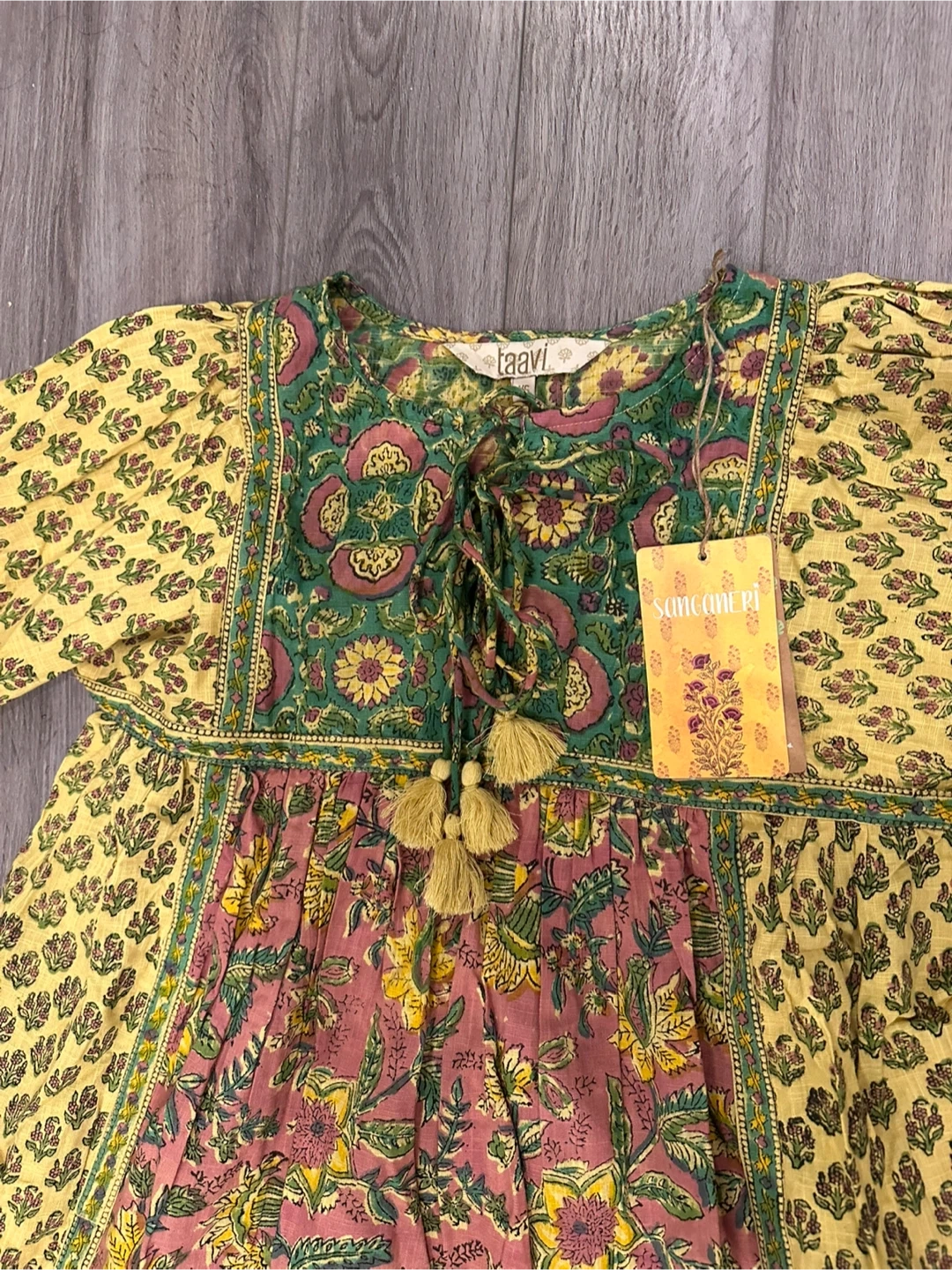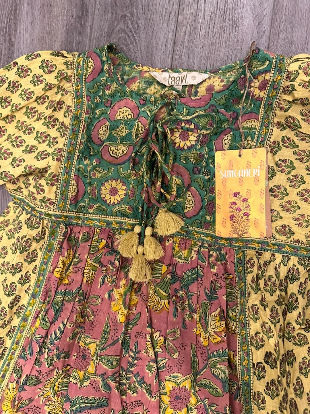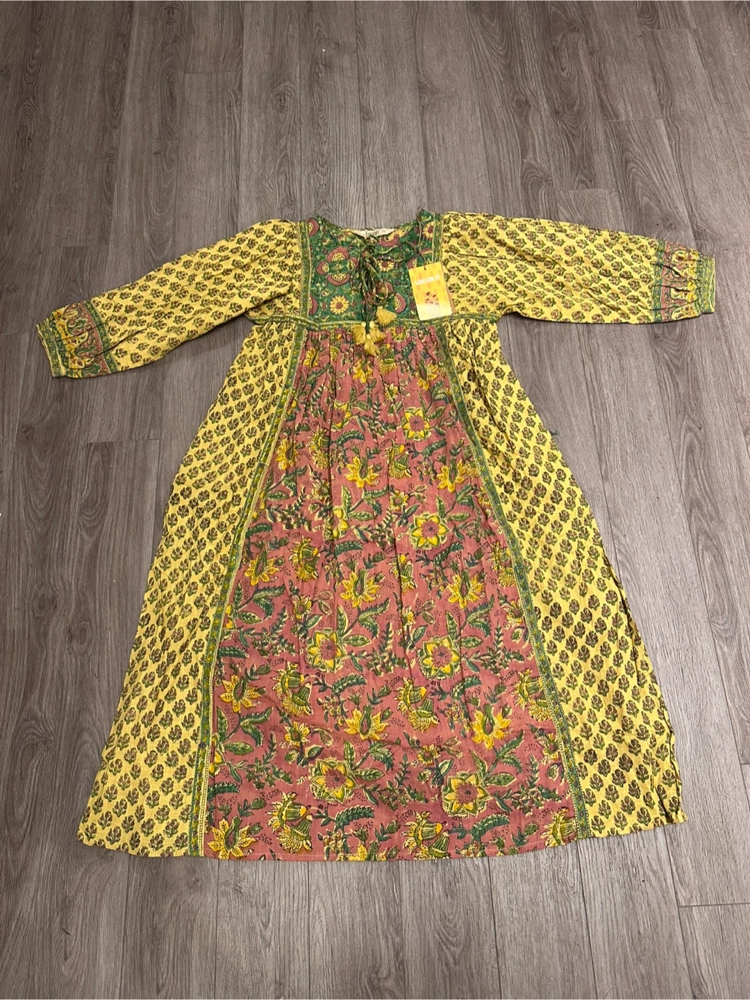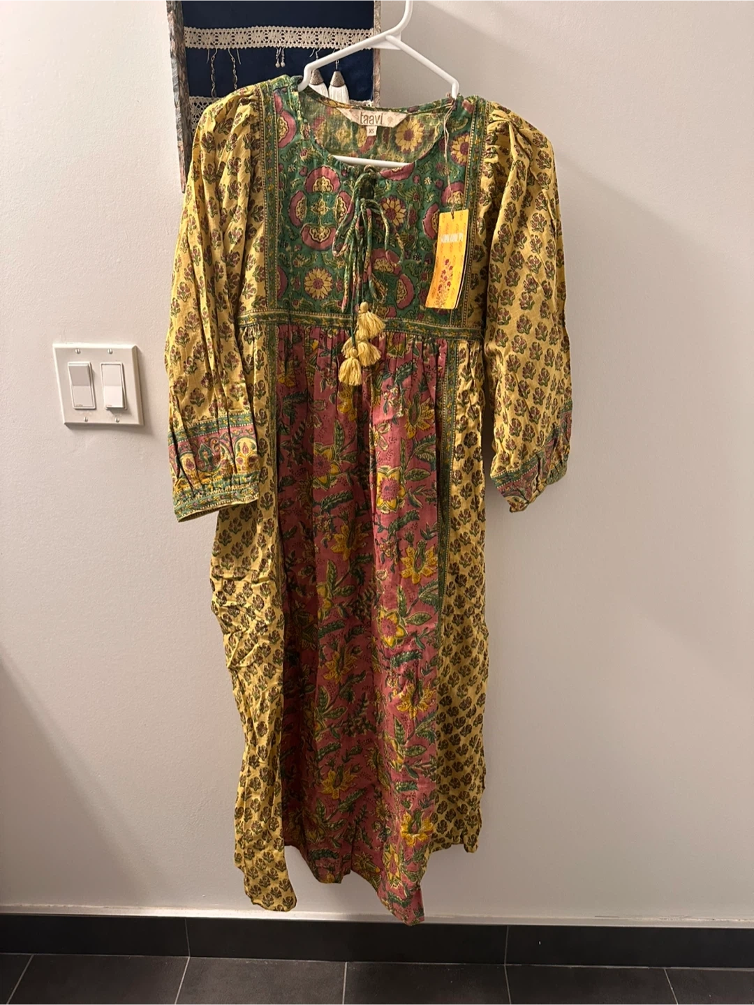 Selling this beautiful dress that adds a great addition to any wardrobe! The dress features a vibrant floral pattern in yellow, pink, and green. It's perfect for a casual day out or a special occasion. It’s pure cotton and with tags. Never worn and brand new.