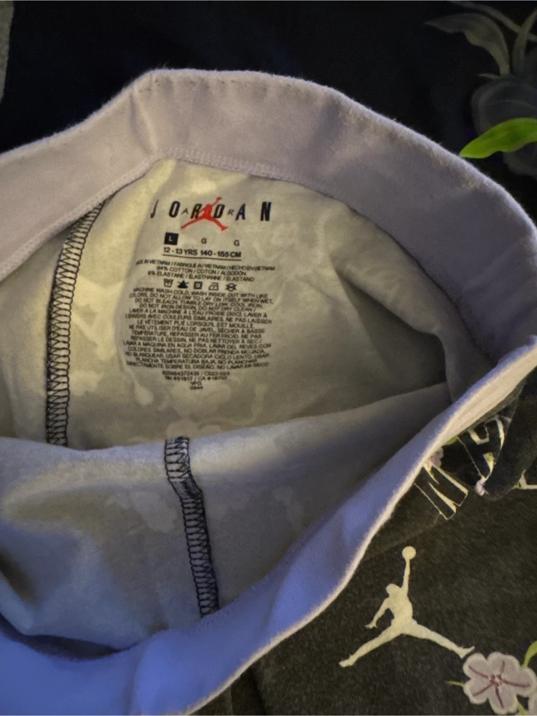 This is a black Jordan t-shirt and matching leggings set for kids. The leggings are sized 12-13 YRS, 140-155 CM. They're made from a cotton and elastane blend.