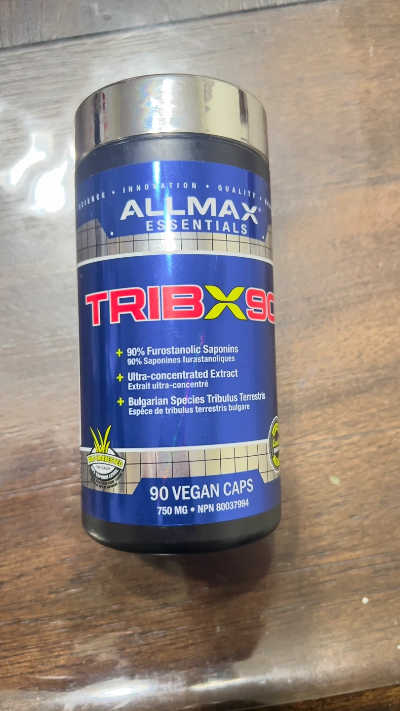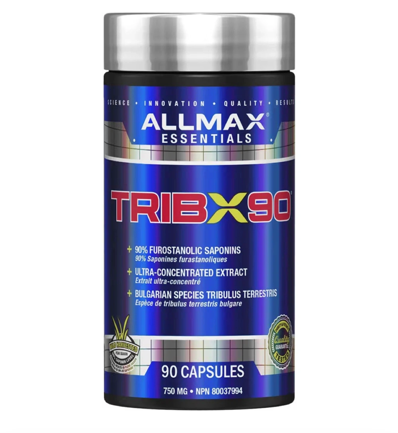 ALLMAX Tribx90 supplement. Contains 90 vegan capsules. 750 MG per capsule. Expiry date is 05/2028