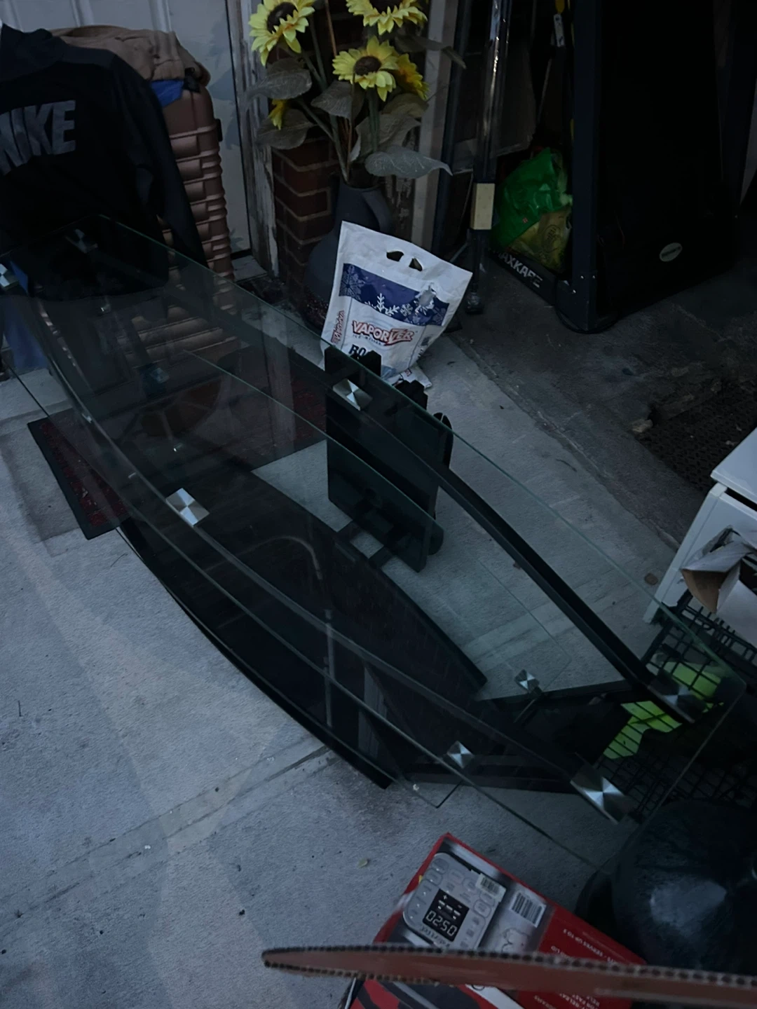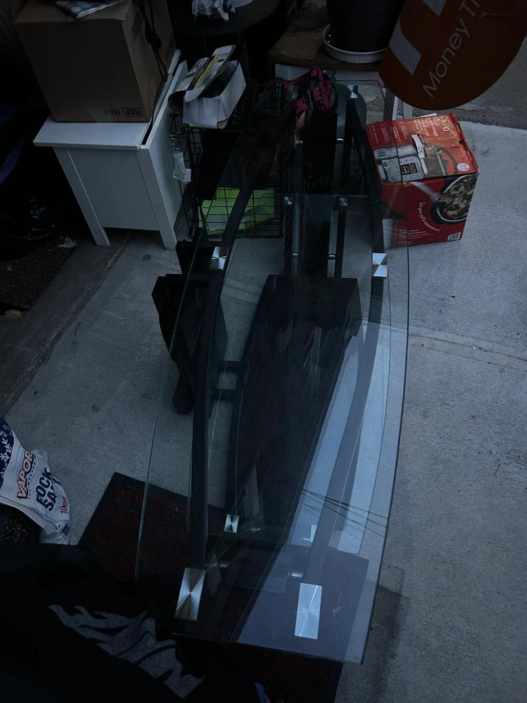 Glass TV Stand with Black Metal Frame