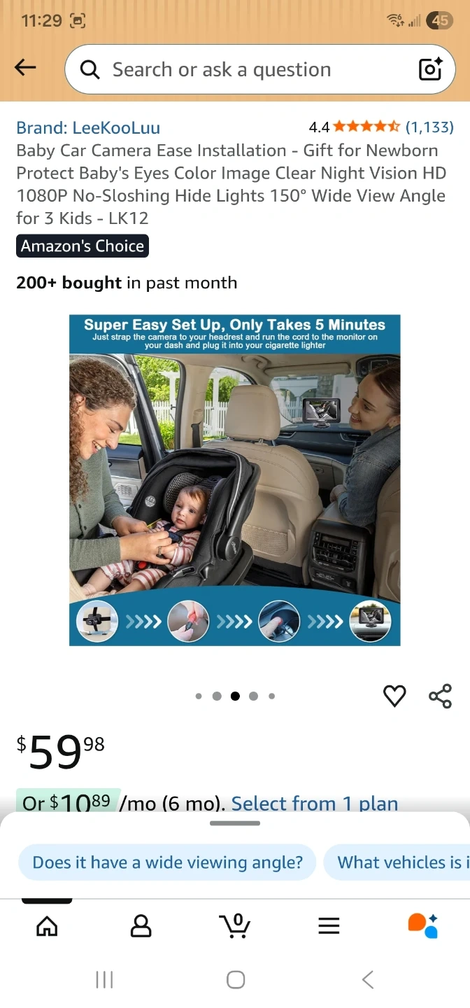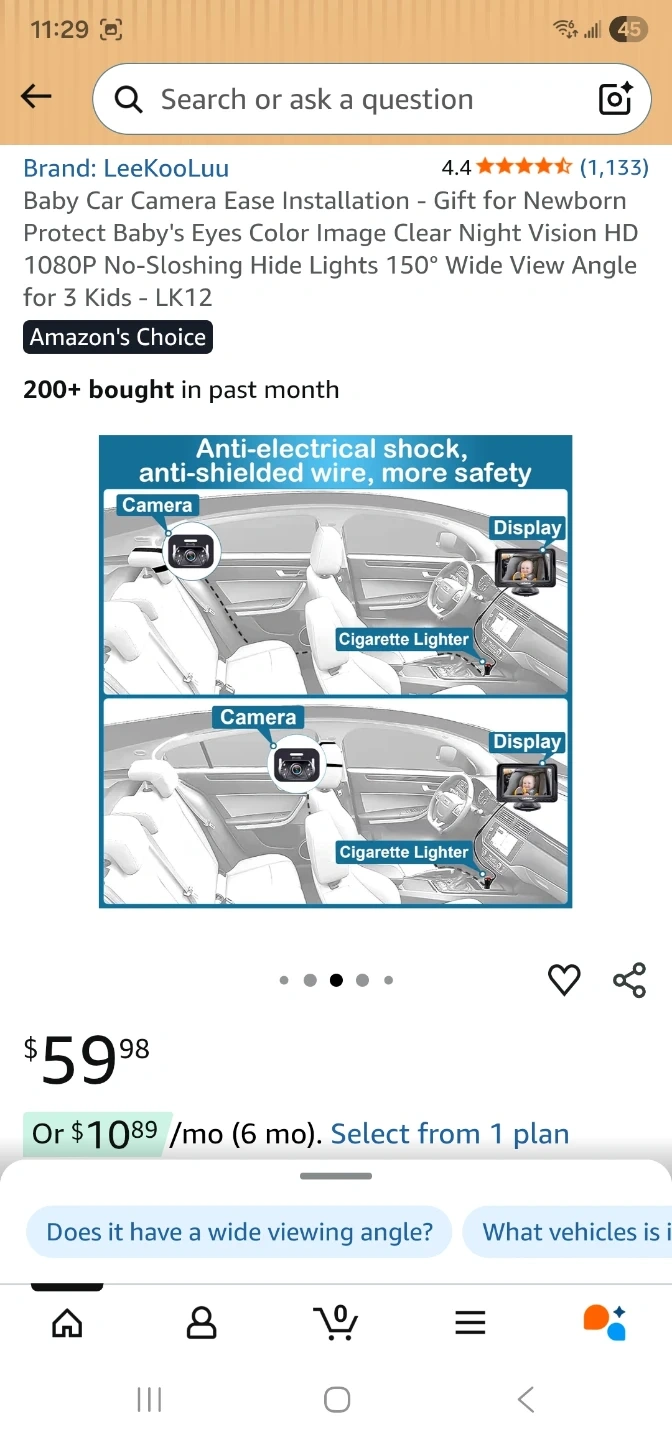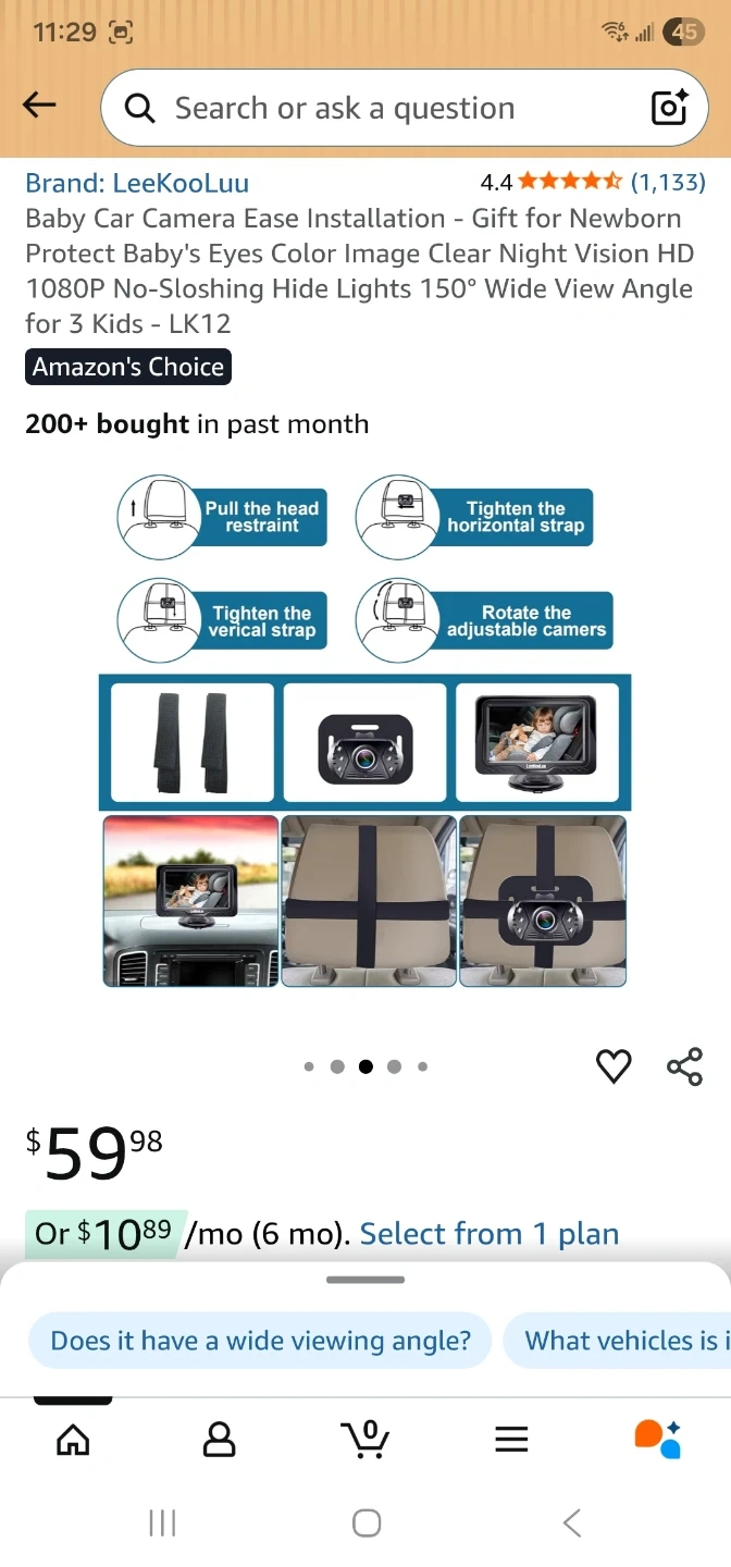 This is a LeeKooLuu Baby Car Camera, model LK12. It features HD camera and HD display for clear viewing. It offers safe driving by allowing you to see your baby while you drive. It's suitable for newborns and toddlers up to 3 kids. It has a 150° wide view angle and night vision.