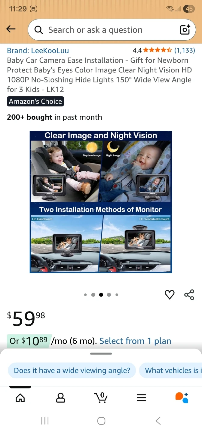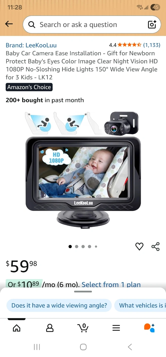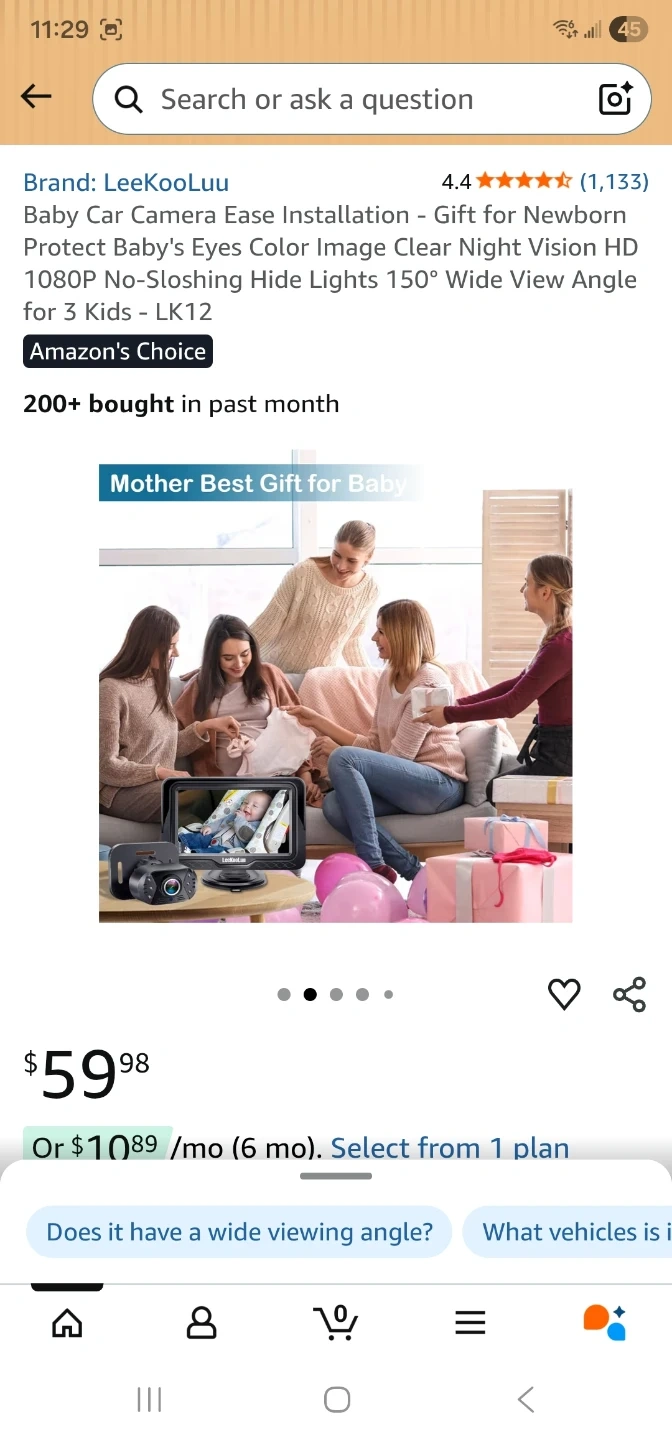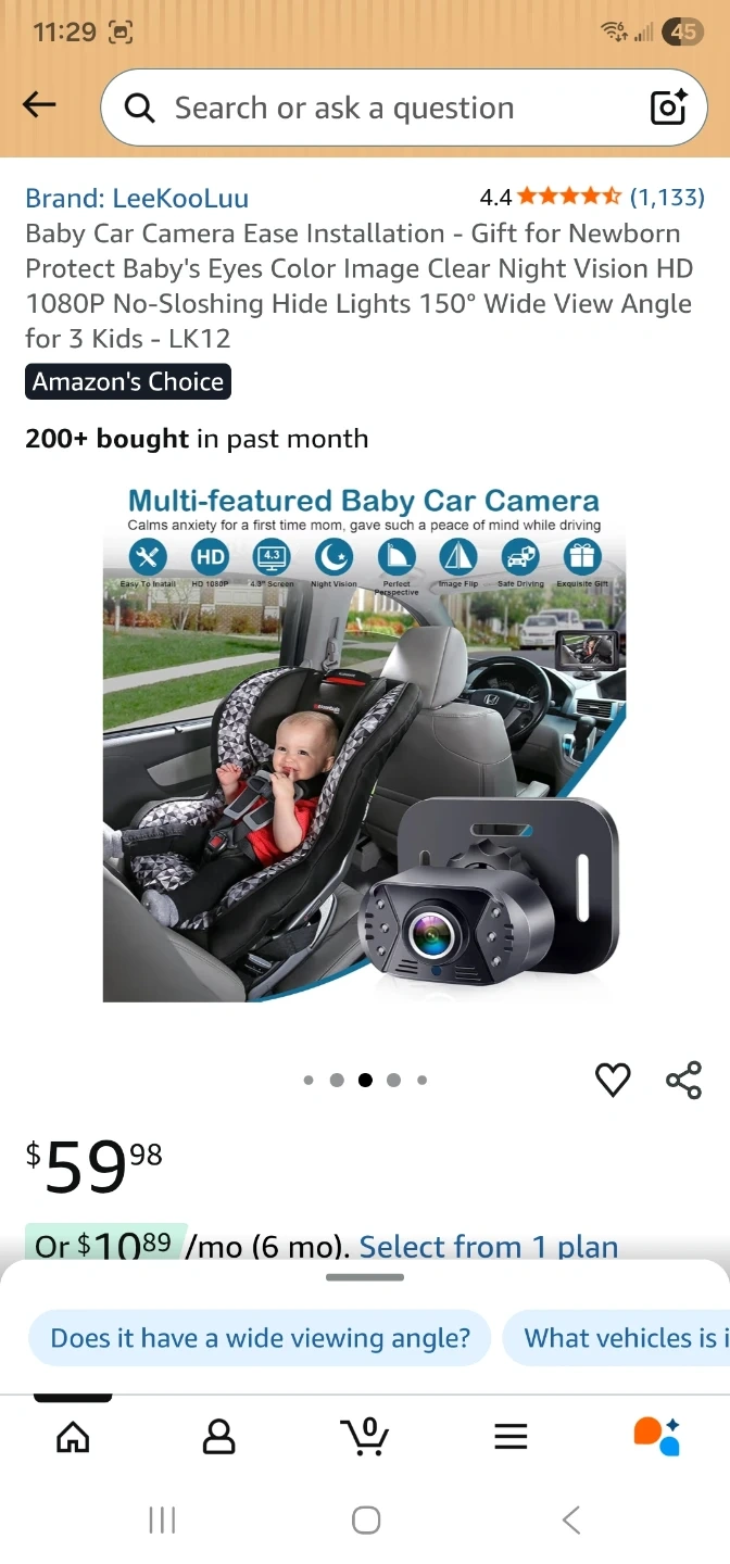 This is a LeeKooLuu Baby Car Camera, model LK12. It features HD camera and HD display for clear viewing. It offers safe driving by allowing you to see your baby while you drive. It's suitable for newborns and toddlers up to 3 kids. It has a 150° wide view angle and night vision.