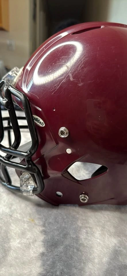 Features an ABS shell with ventilation, similar to the "Revolution Speed" pro model, to help keep players cool. Includes patented Side Impact Protection (PSIP) with an interior liner extending to the jaw to better absorb lateral impacts. It's very lightweight (approx. 1 kg without facemask), making it easier for children to maintain proper neck and head posture. Compatible with Riddell Speed (S-Bar) series facemasks.