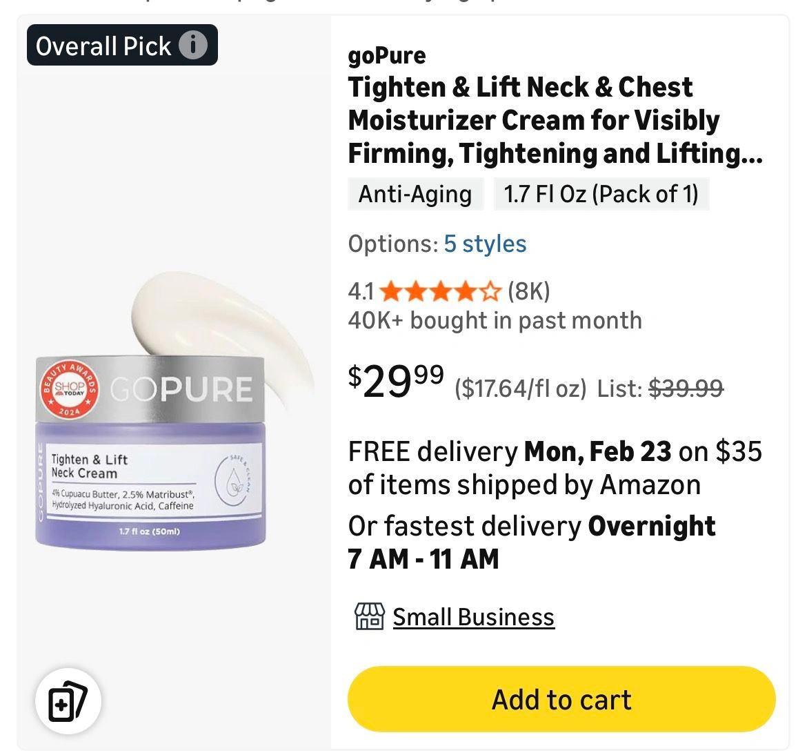 Buy & SellTighten And Lift Neck CreamTighten And Lift Neck Cream$25goPure Tighten & Lift Neck & Chest Moisturizer Cream for Visibly Firming, Tightening and Lifting Wrinkles & Crepey Skin, 1.7oz. Feel free to message if you have any questions!WHERE TO MEETCheck LocationView MapSELLERverifiedNayelleWestmont670 reviews0 chats·0 favorites·0 viewsSEND CHAT TO SELLERHi Nayelle! I’m interested in your listing.Hi Nayelle! I’m interested in your listing.Get the Karrot app to chatSign In to chat