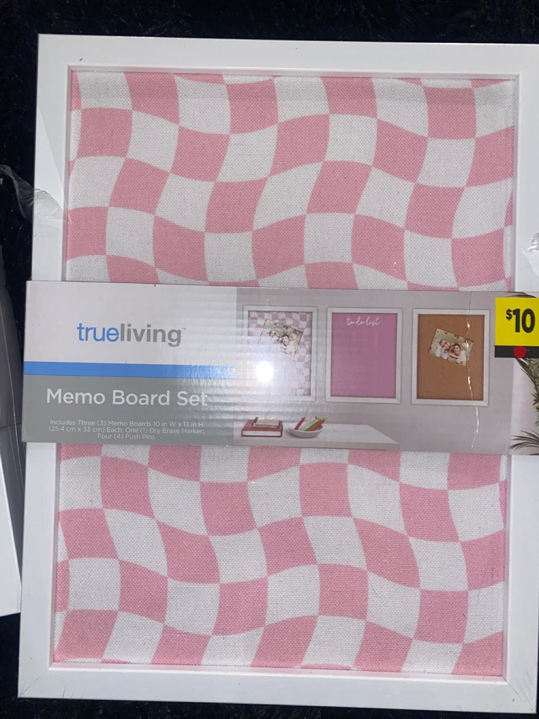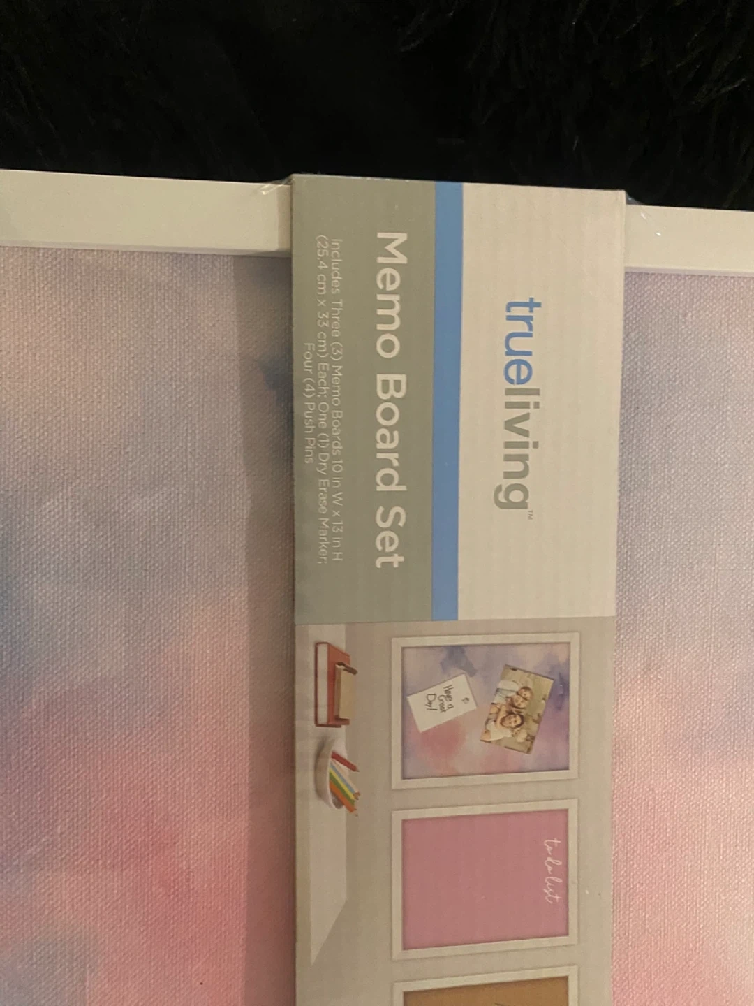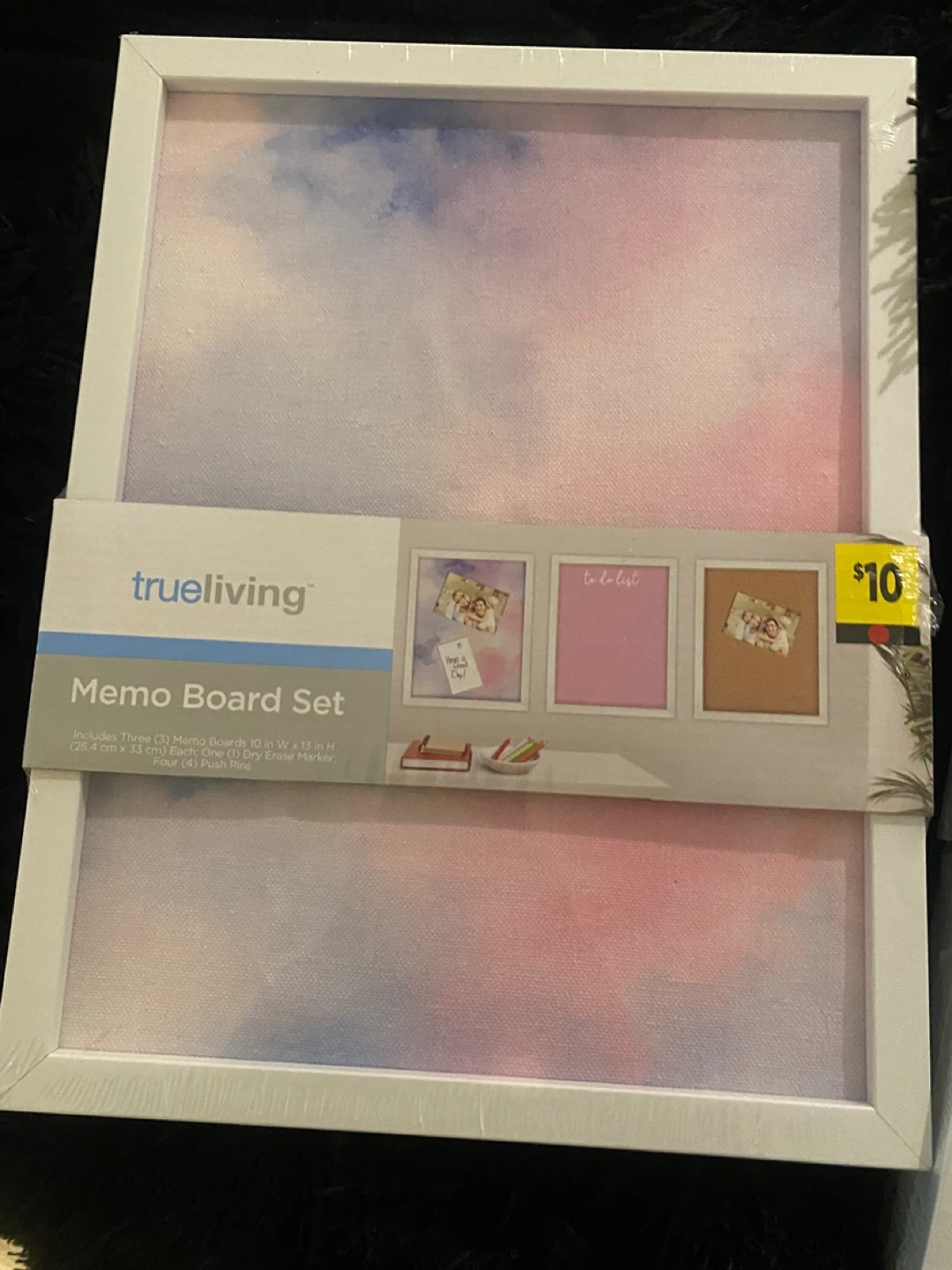 This Trueliving Memo Board Set includes three 10 in W x 13 in H memo boards. Each set comes with one dry erase marker and four push pins. Perfect for displaying notes and photos!