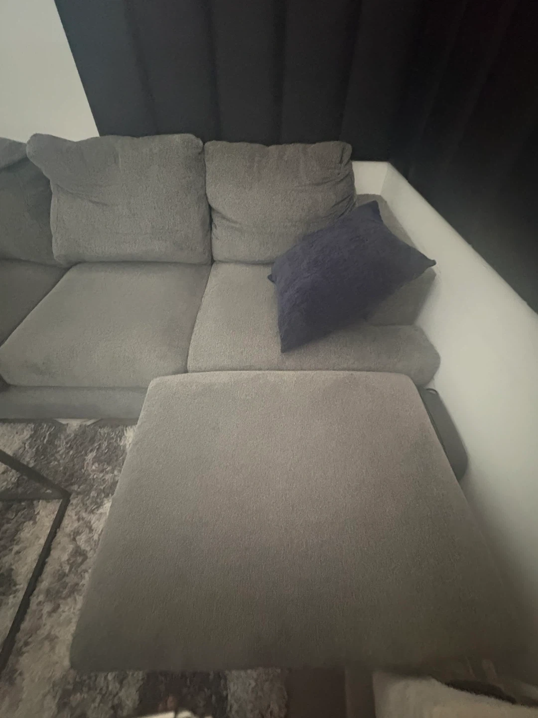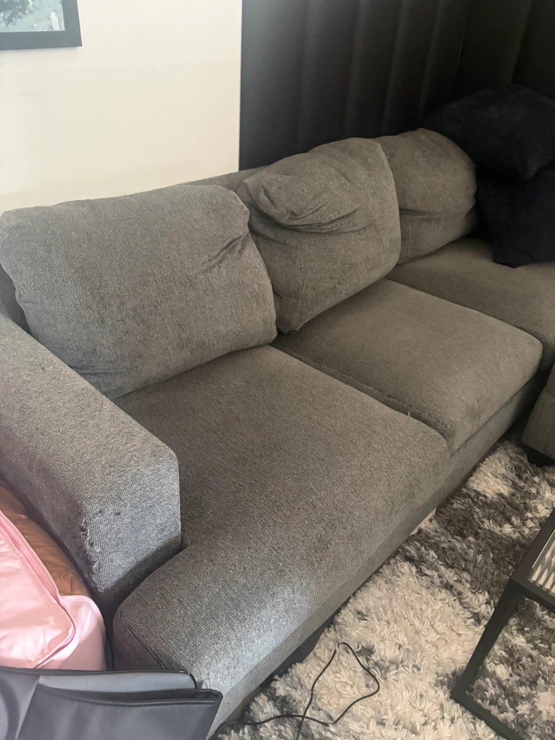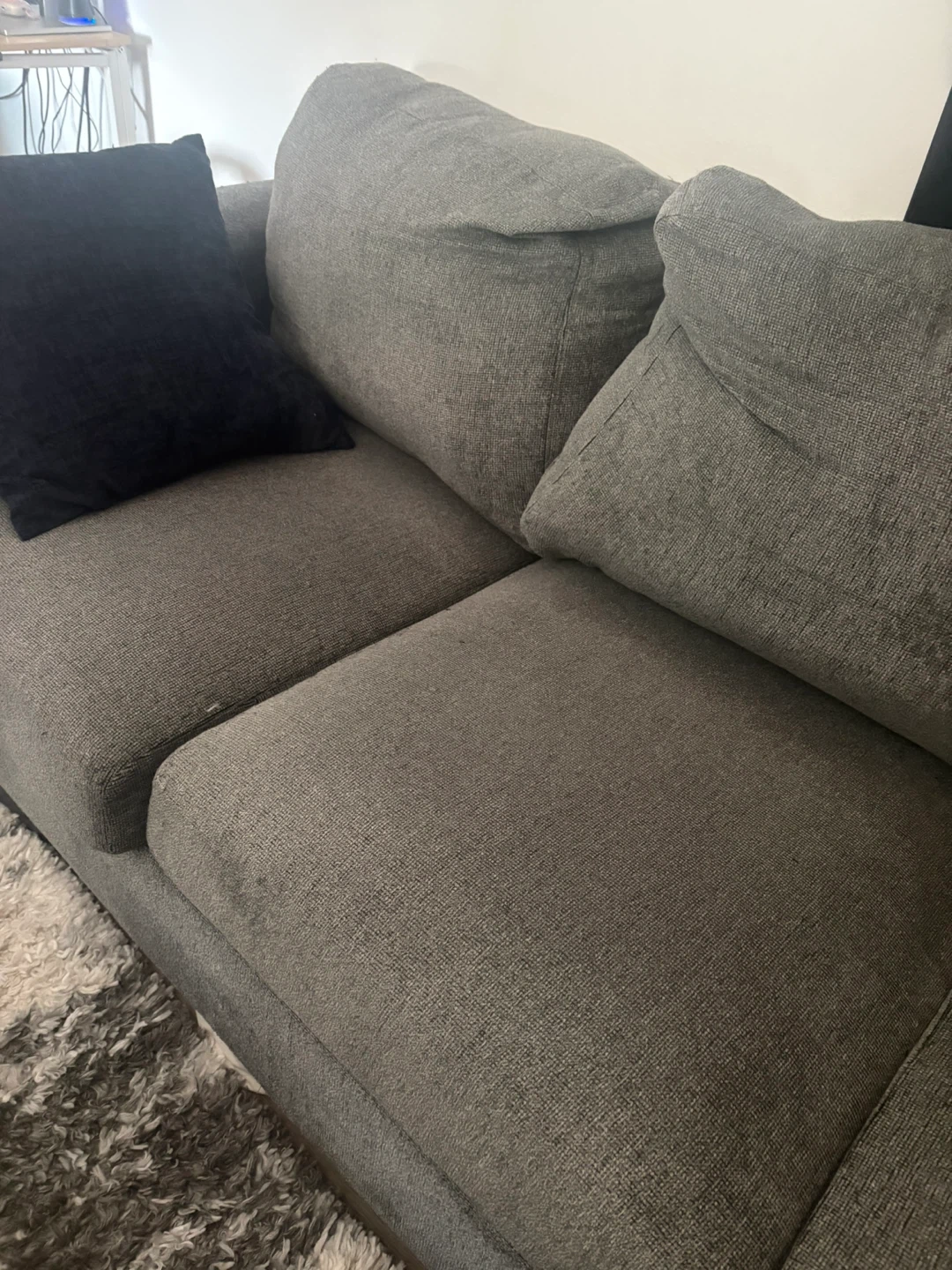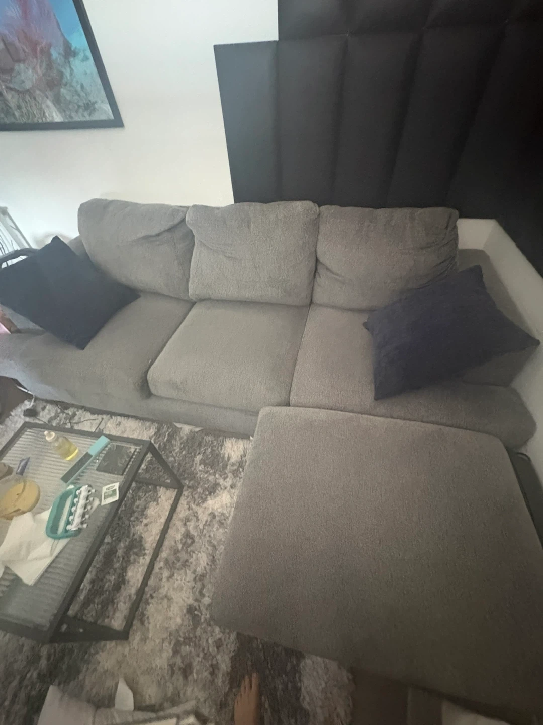 Very soft and comfortable dark grey chenile sofa and ottoman which transforms the sofa to a chaise lounger. Moving sale. There is some minor wear on the edges from cat otherwise no spills, no smoke and no dog or other pets on the sofa it has not been used to much only for 2 years and has been protected by blankets covering the sofa material. Pickup/Cash/Venmo only - Waterside Plaza easy drive up area off FDR drive. orginal cost and buy from wayfair at retail price $577 for the sofa and $250 for the ottoman at +$800. Don't pay full price for a brand new sofa get this whole set for only $225!