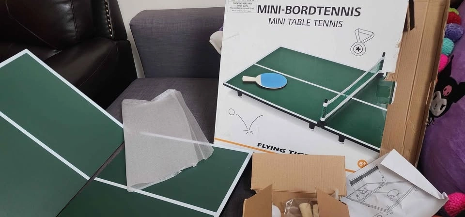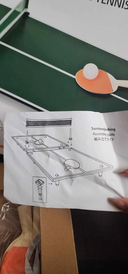 Contents: Includes a mini table, net, two rackets (paddles), and two balls and assembly pieces.