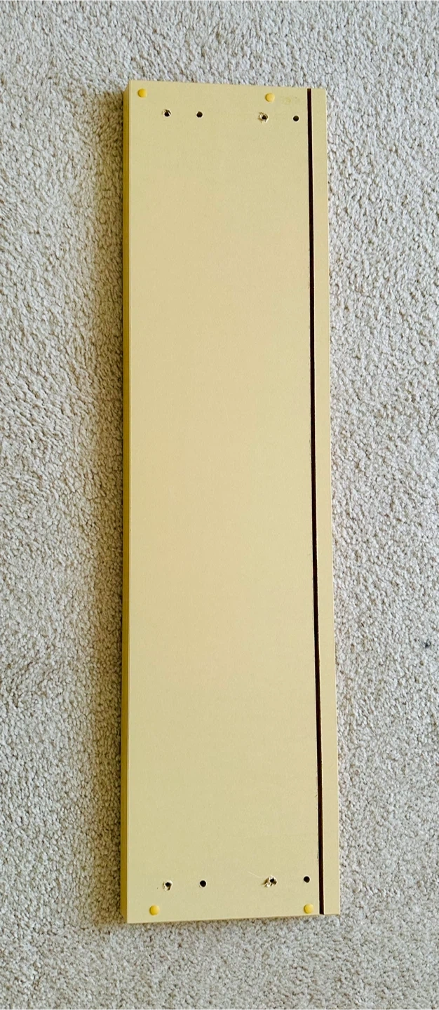 This IKEA shelf has pre-drilled holes for mounting. It's a simple, functional piece for storage or display.