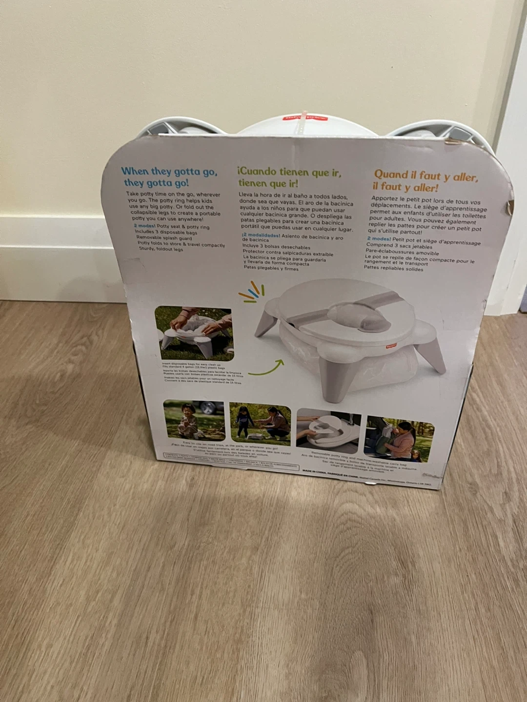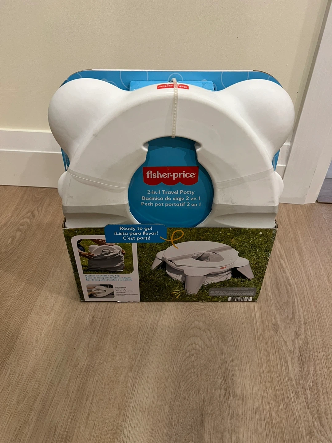 Selling a Fisher-Price 2-in-1 Travel Potty! It's in excellent condition and comes in the original box. Perfect for on-the-go potty training. It can be used as a standalone potty or placed on a regular toilet seat. The legs fold compactly for easy storage and travel