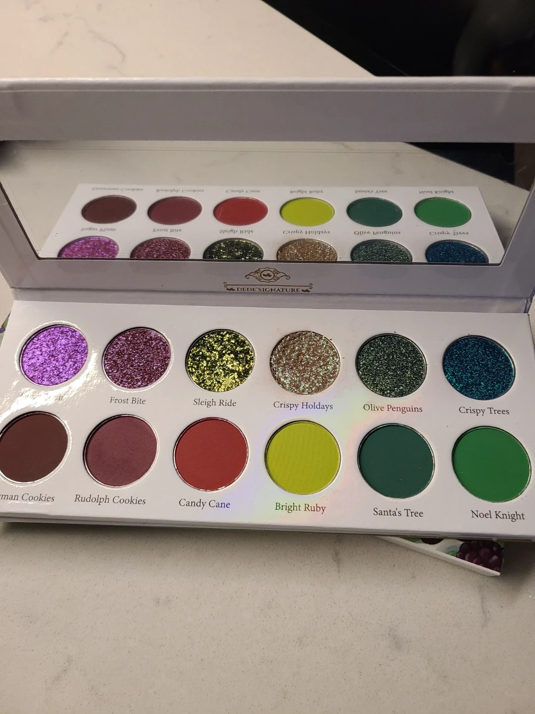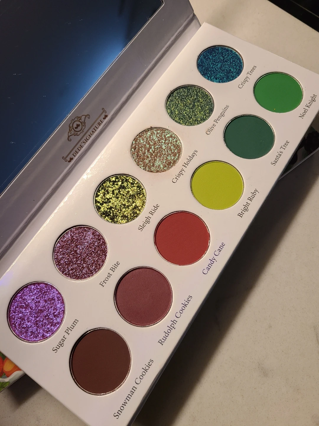Dede' Signature Jingle Bell Ruby eyeshadow palette features 12 festive shades.