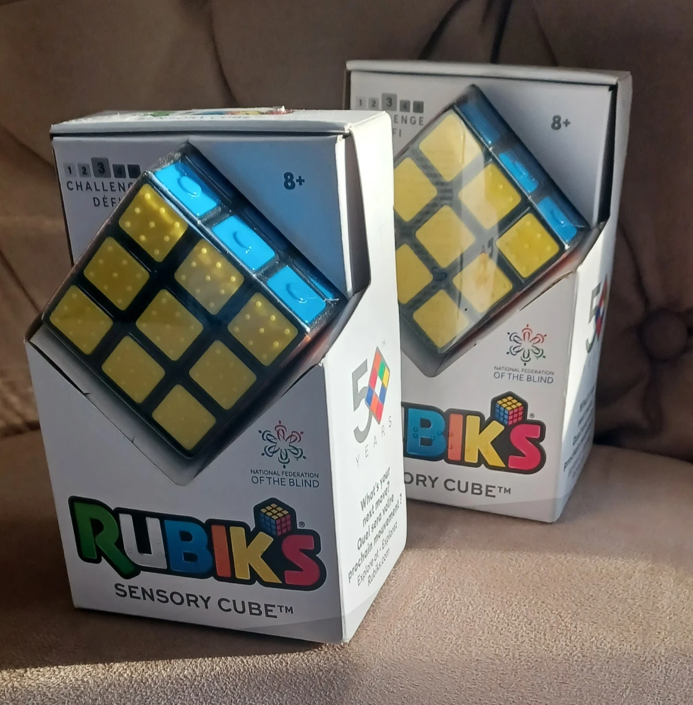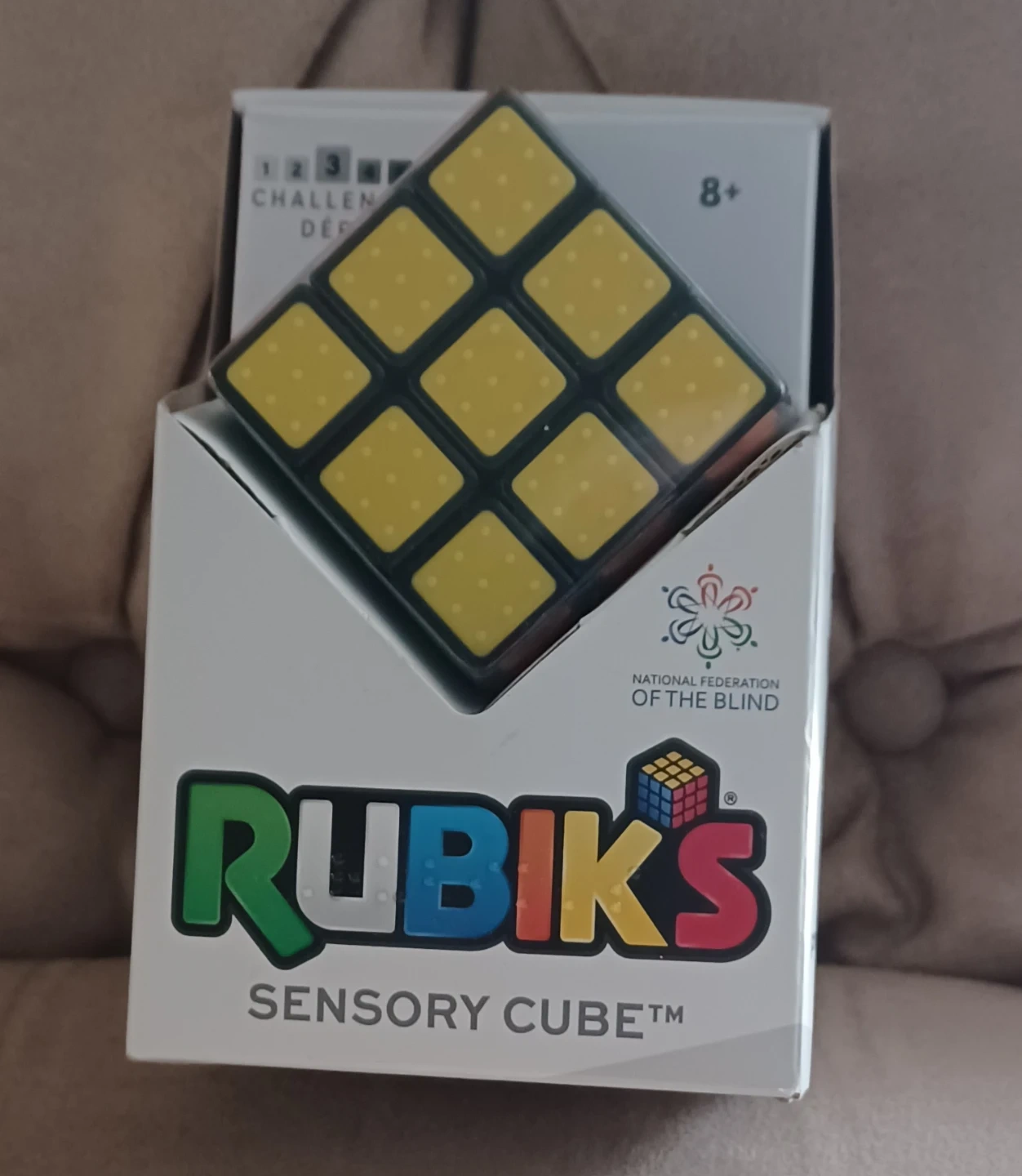Solve by touch with the Rubik's Sensory Cube, designed for a new challenge with tactile puzzle pieces and patterns. It's suitable for ages 8 and up.