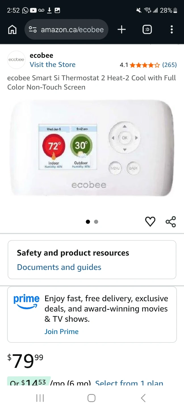 This is a brand new ecobee Smart Si thermostat. It's a white, non-touch screen model. Includes user manual and mounting hardware.