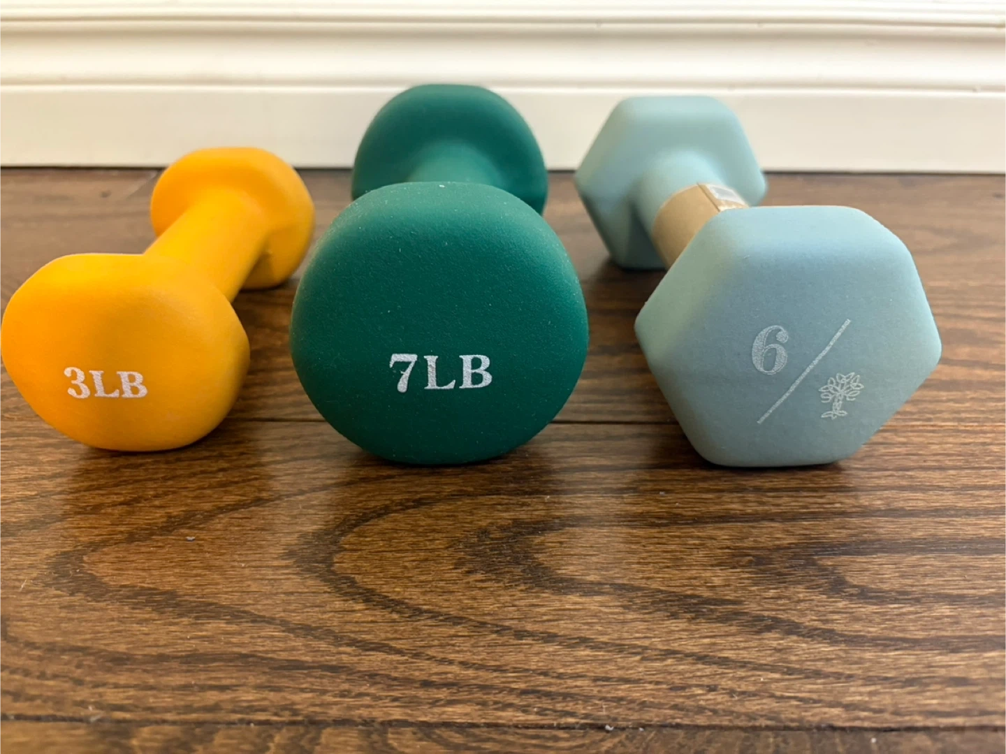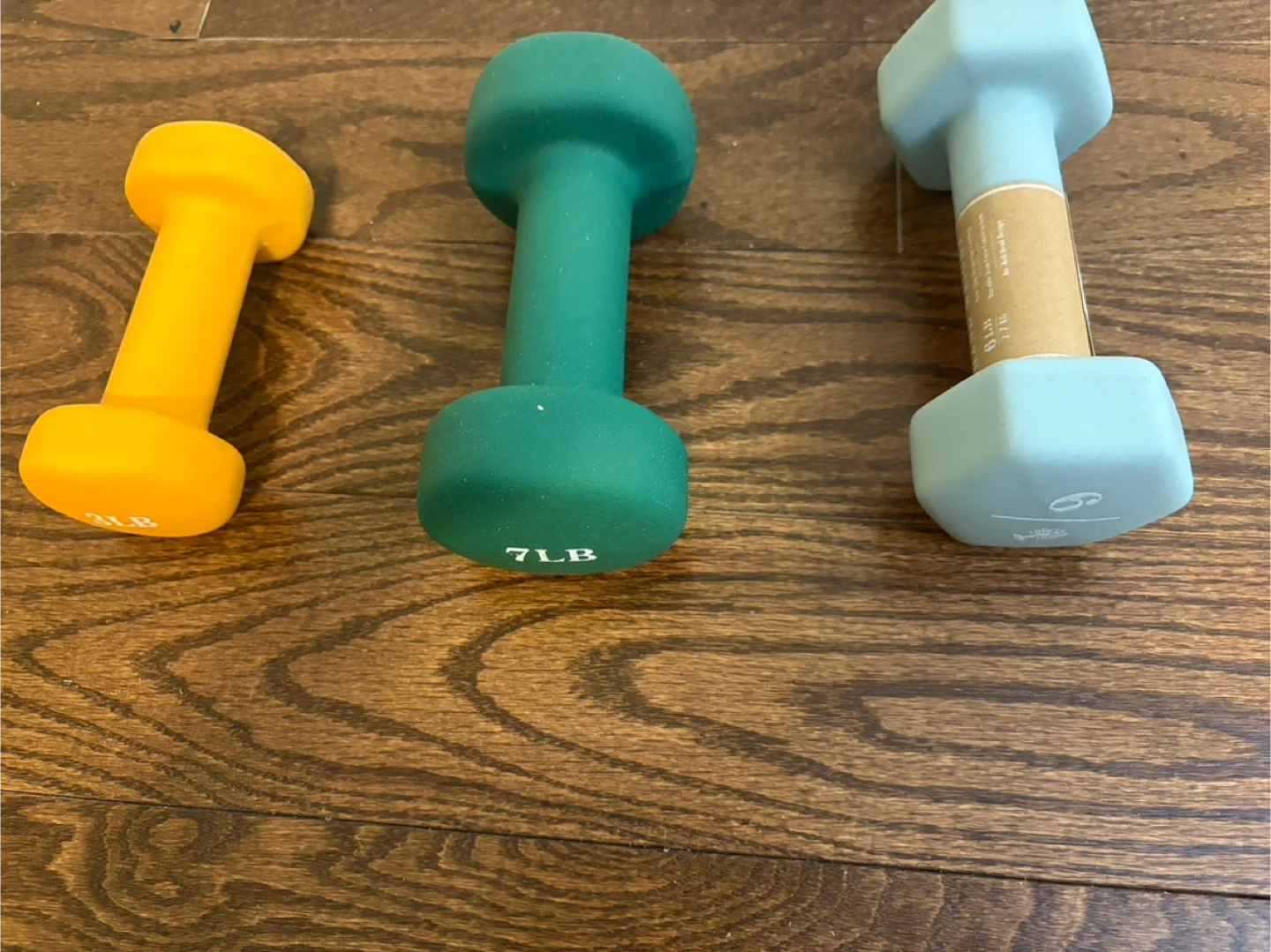 3 lbs, 6 lbs and 7 lbs dumbbells