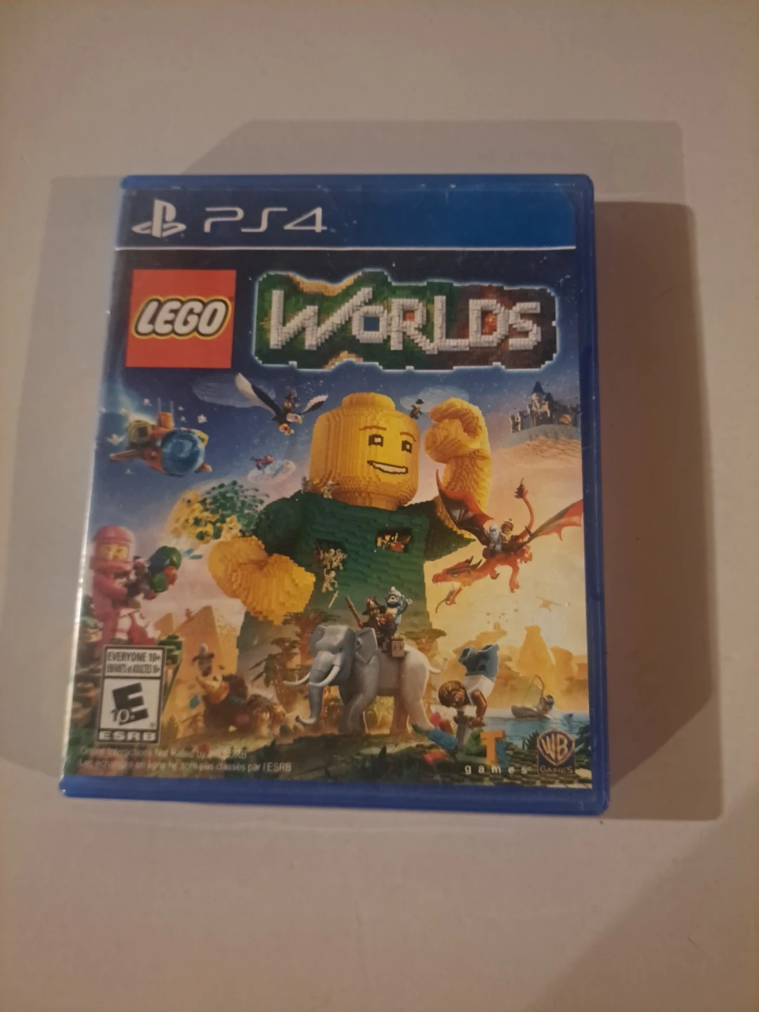 This is the LEGO Worlds video game for PS4. It's an open-world game where players can build and explore using LEGO bricks. The game is rated E for Everyone 10+ by ESRB.