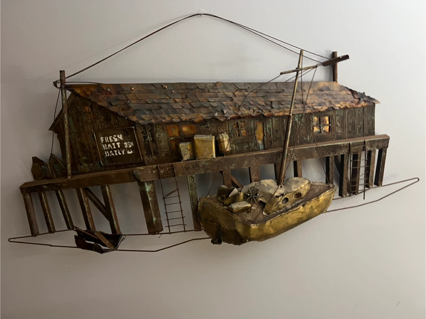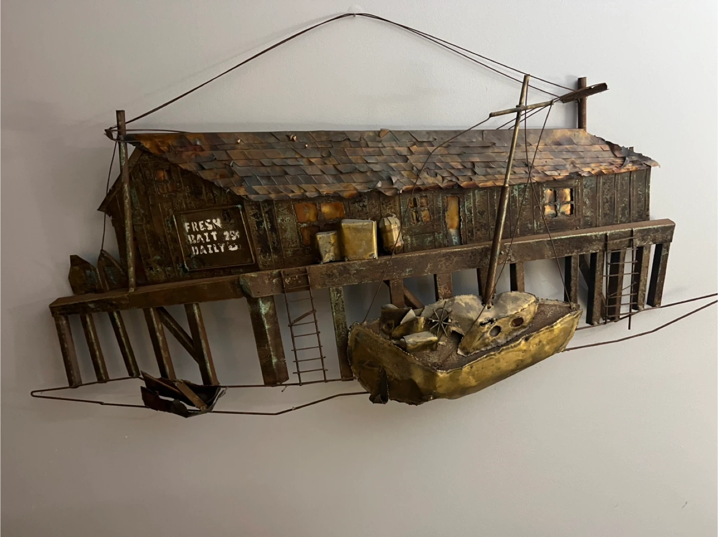 Vintage Metal Wall Art - Fishing Shack & Boat Scene