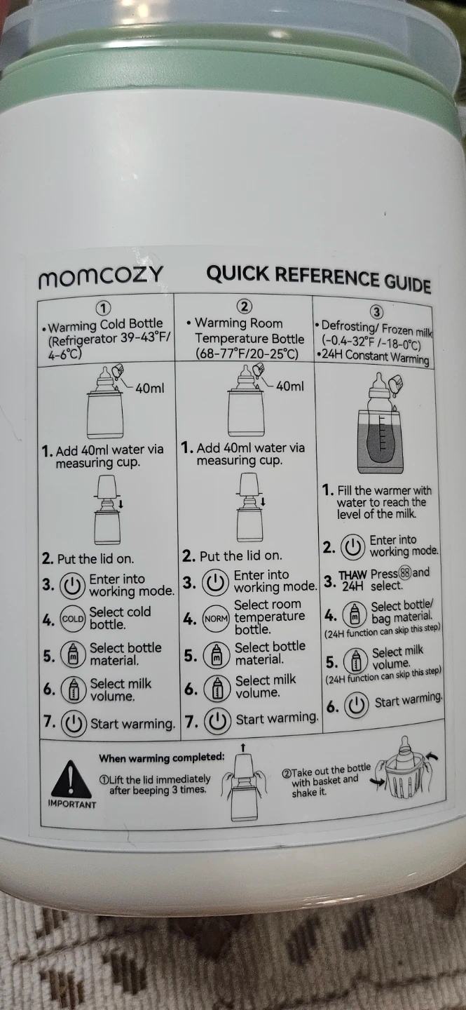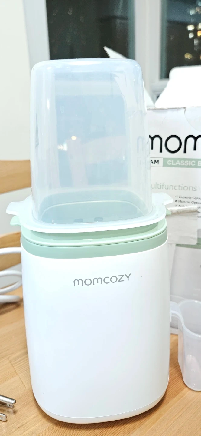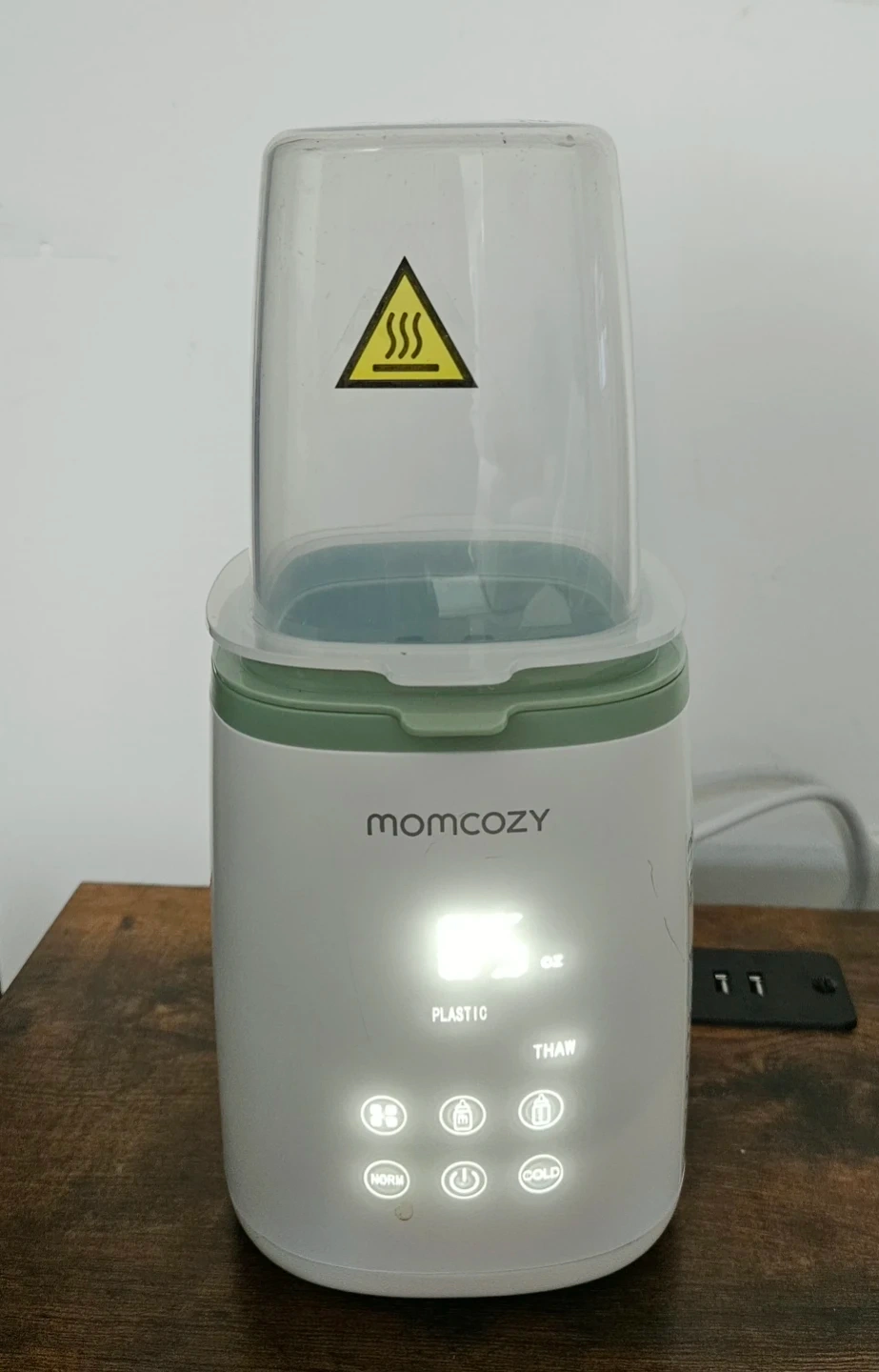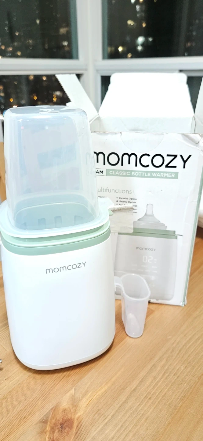 This is a Momcozy Classic Bottle Warmer. It offers instant and easy warming functions. It's BPA-free and includes multiple accessories for warming, steaming, and thawing. Useful for quickly preparing bottles for your baby.