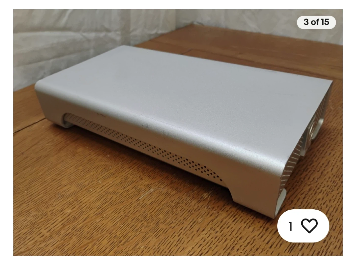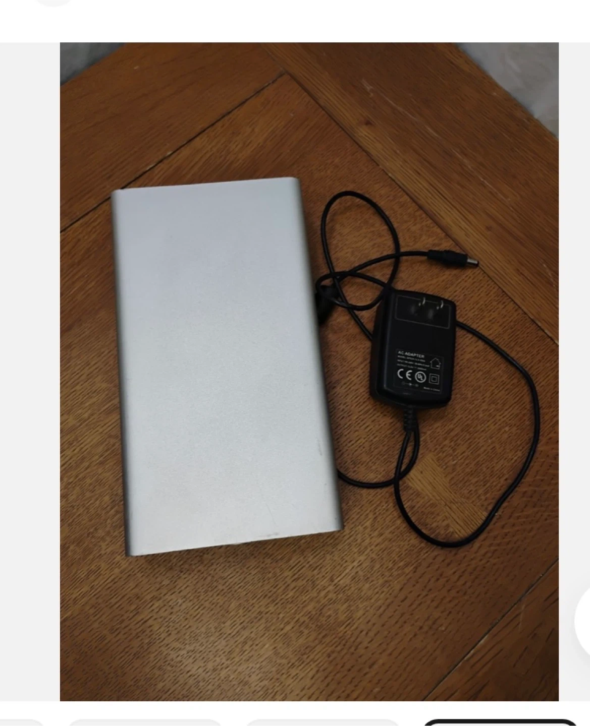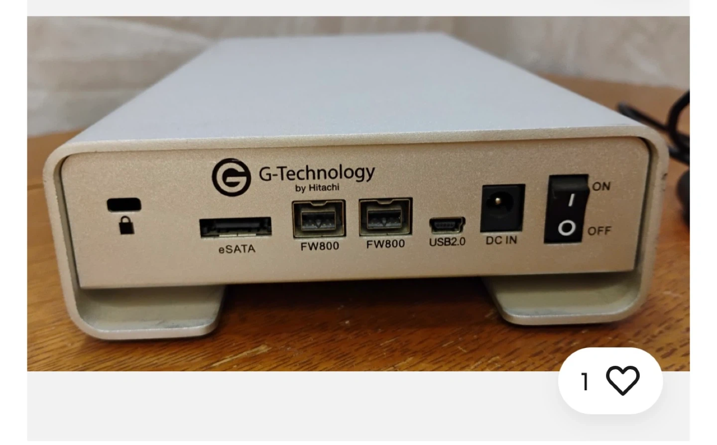 This is a G-Technology G|DRIVE external hard drive enclosure. It includes eSATA, FW800, and USB 2.0 ports. The enclosure is silver and made of aluminum. It comes with its AC adapter.