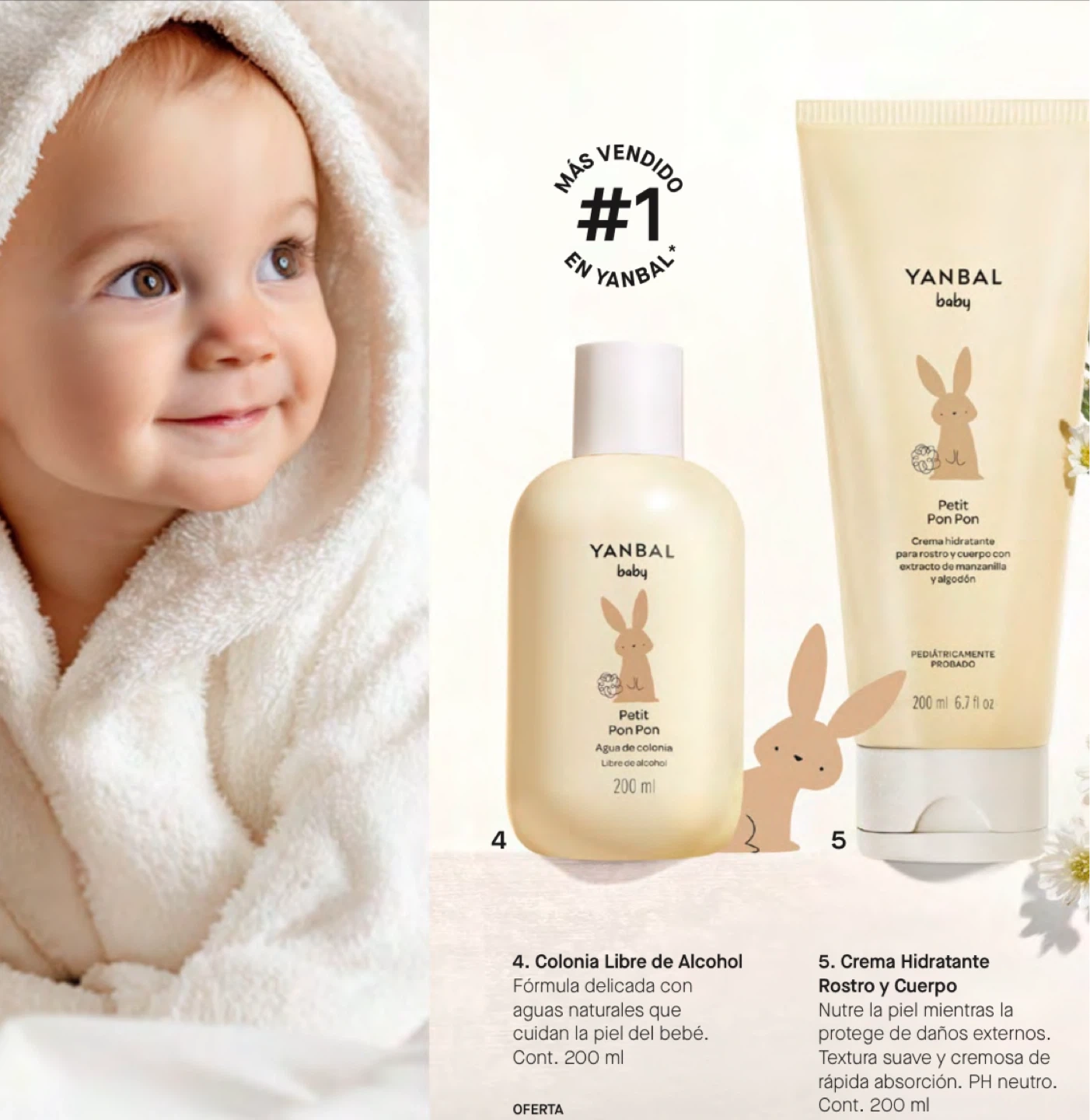 Yanbal Baby Petit Pon Pon Alcohol-Free Colonia Libre de Alcohol. Gentle formula with natural waters that care for baby's skin. 200 ml bottle.