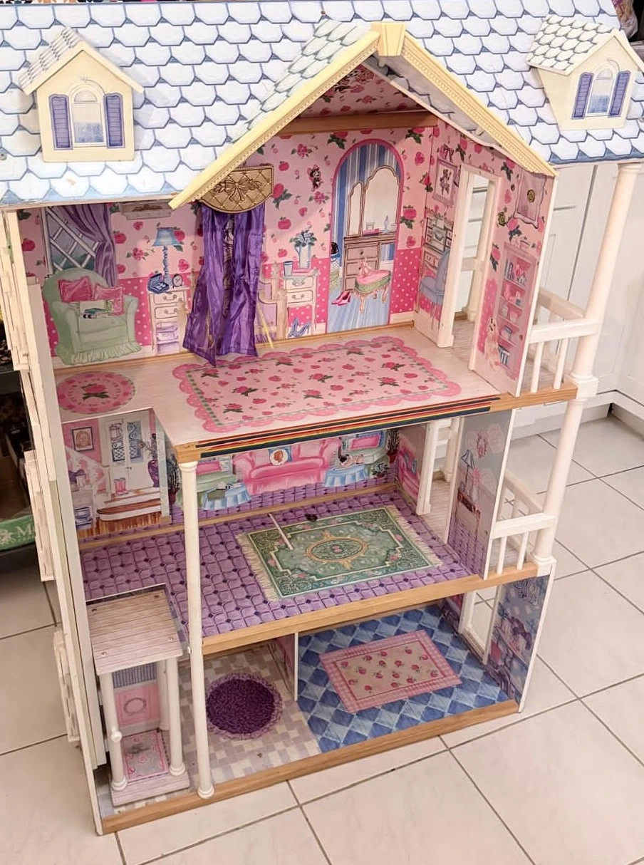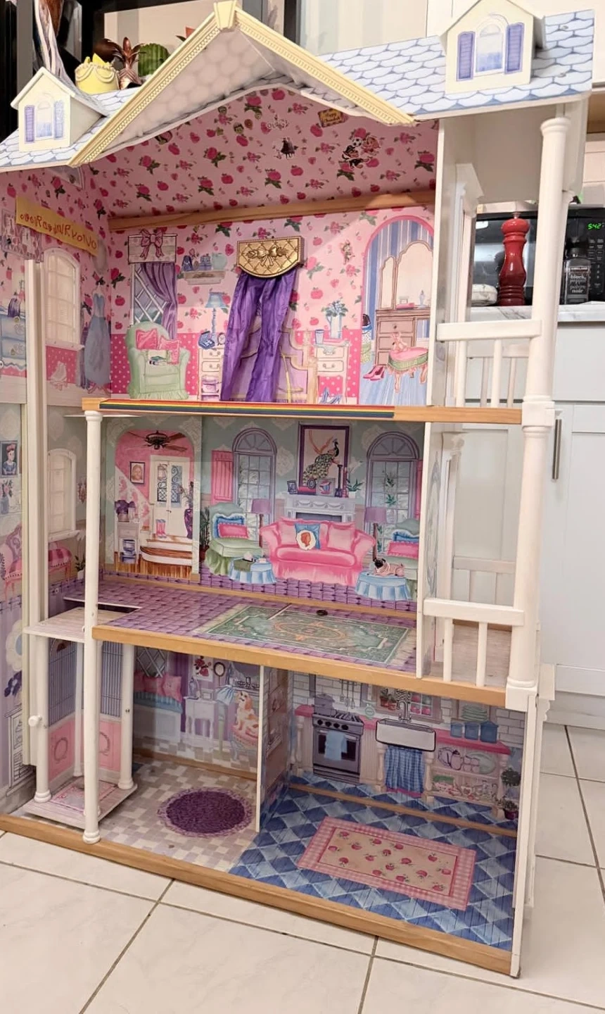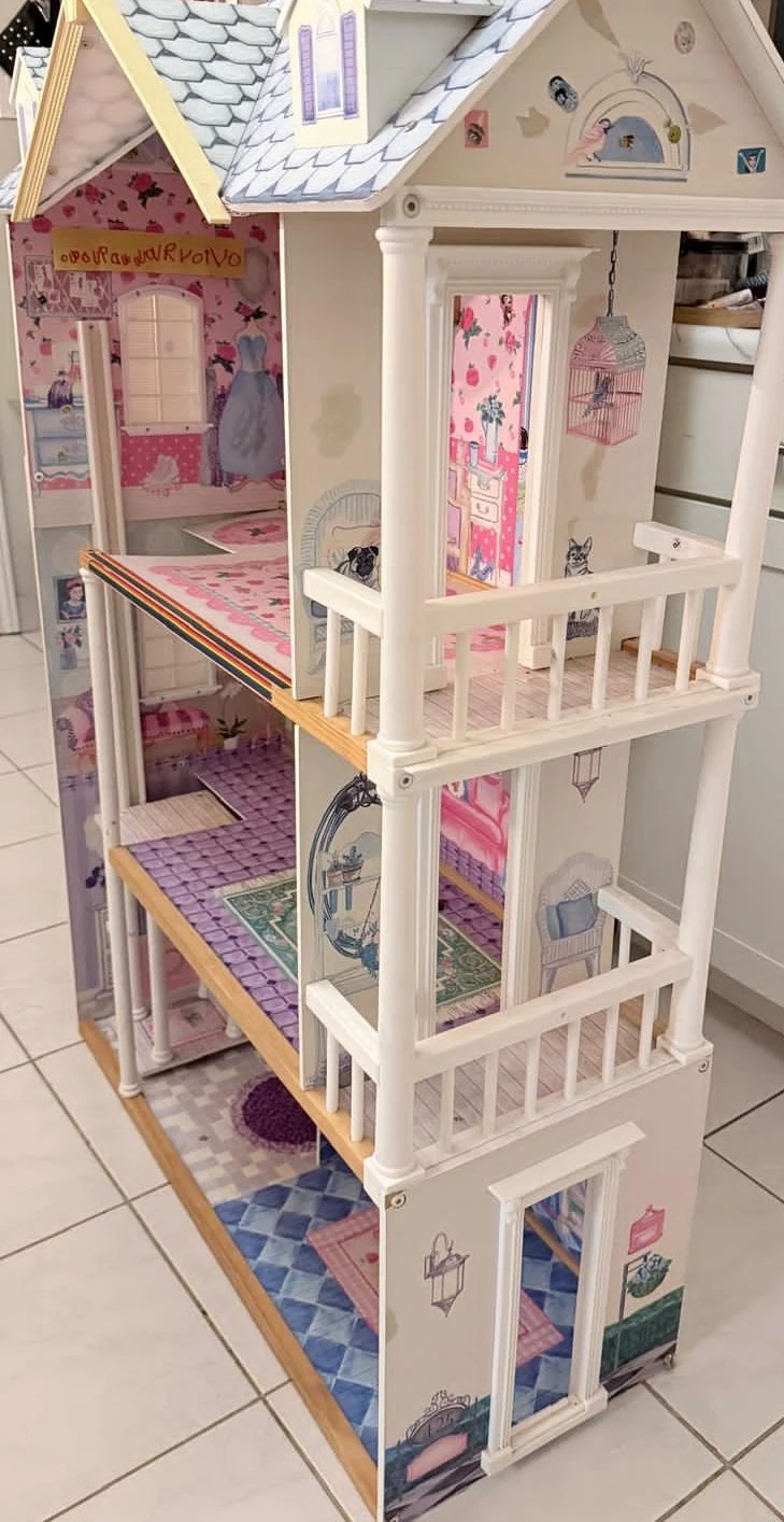 KidKraft dollhouse in decent condition. Not the original owner. Has a couple small cracks, stickers on it, etc. Our kiddo loved it but we just downsized to a new one.