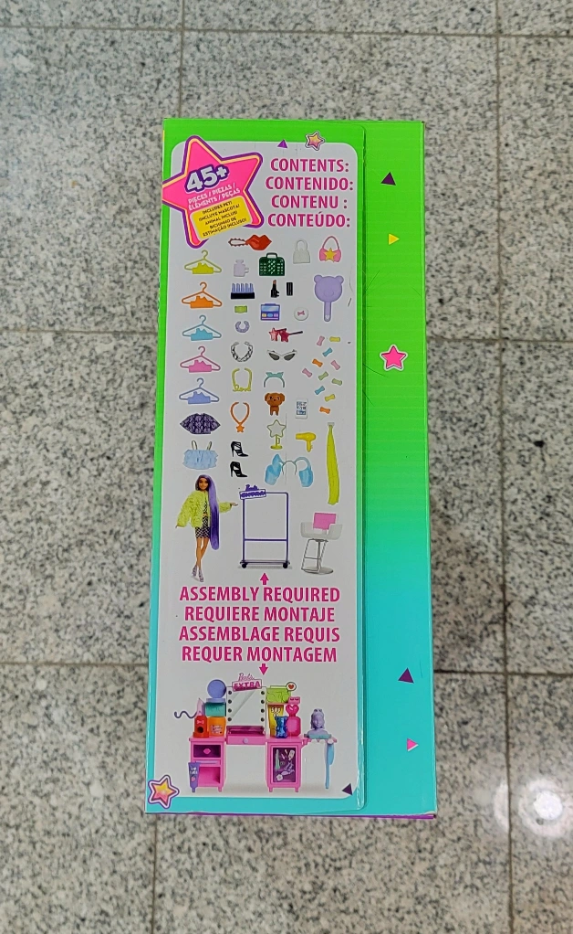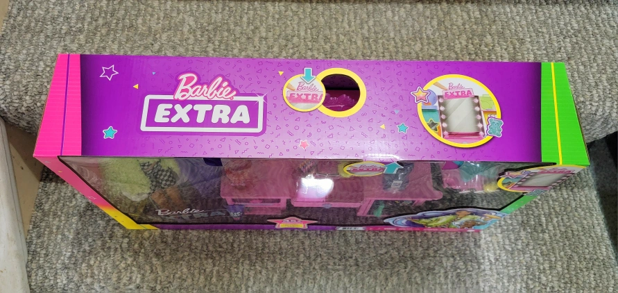 Barbie Extra Doll with vanity, chair, and accessories. Includes a doll, playset, and accessories.