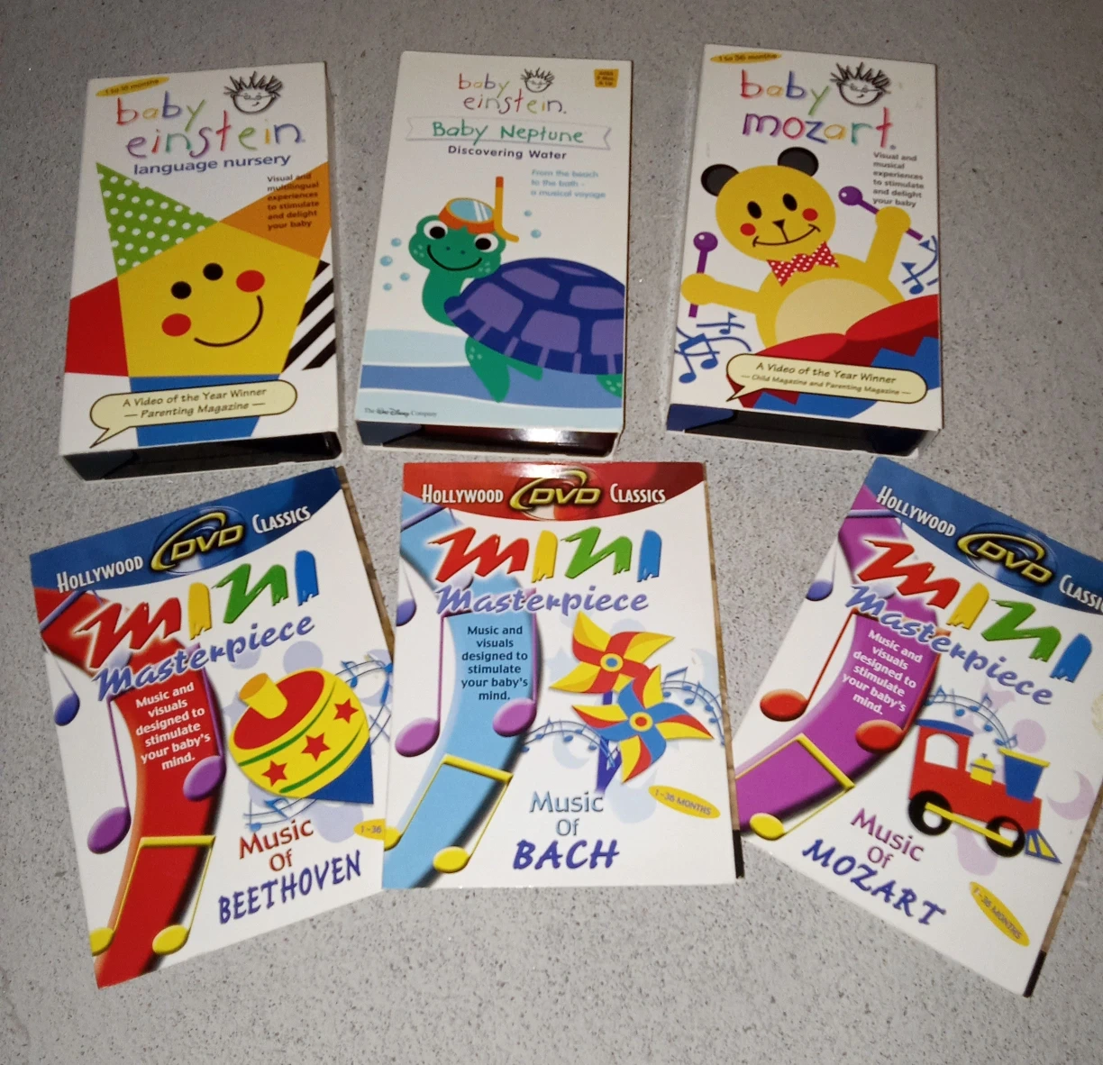 Selling a collection of Baby Einstein and Hollywood DVD Classics! These DVDs are designed to stimulate your baby's mind with music and visuals. Perfect for little ones aged 1-36 months. Includes:
