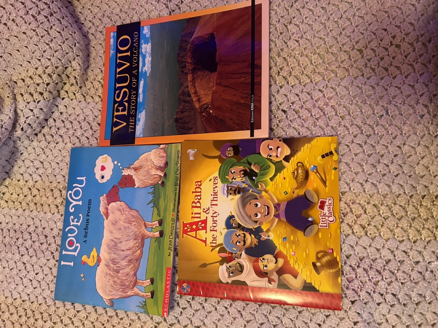 one about a volcano, one called Ali Baba and the Forty Thieves, and one Rebus poem called I Love You