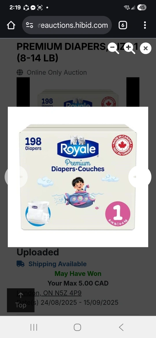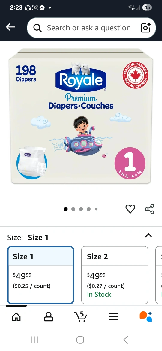 Selling a pack of Royale Premium Diapers, Size 1 (8-14 lb). These diapers are perfect for little ones weighing between 8 and 14 pounds or 4-6 kg. The box includes 198 diapers. Originally bought for $49.99