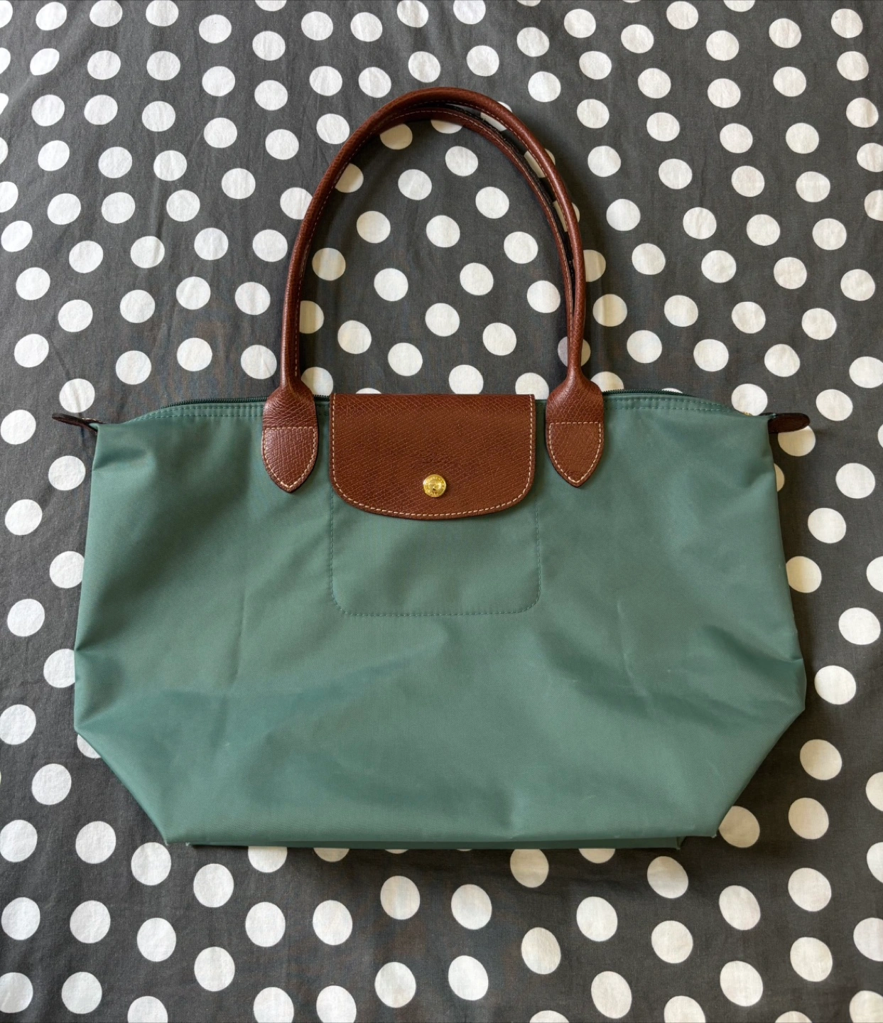 Selling an authentic medium Longchamp tote bag in cypress colour. It's in excellent condition and perfect for everyday use!