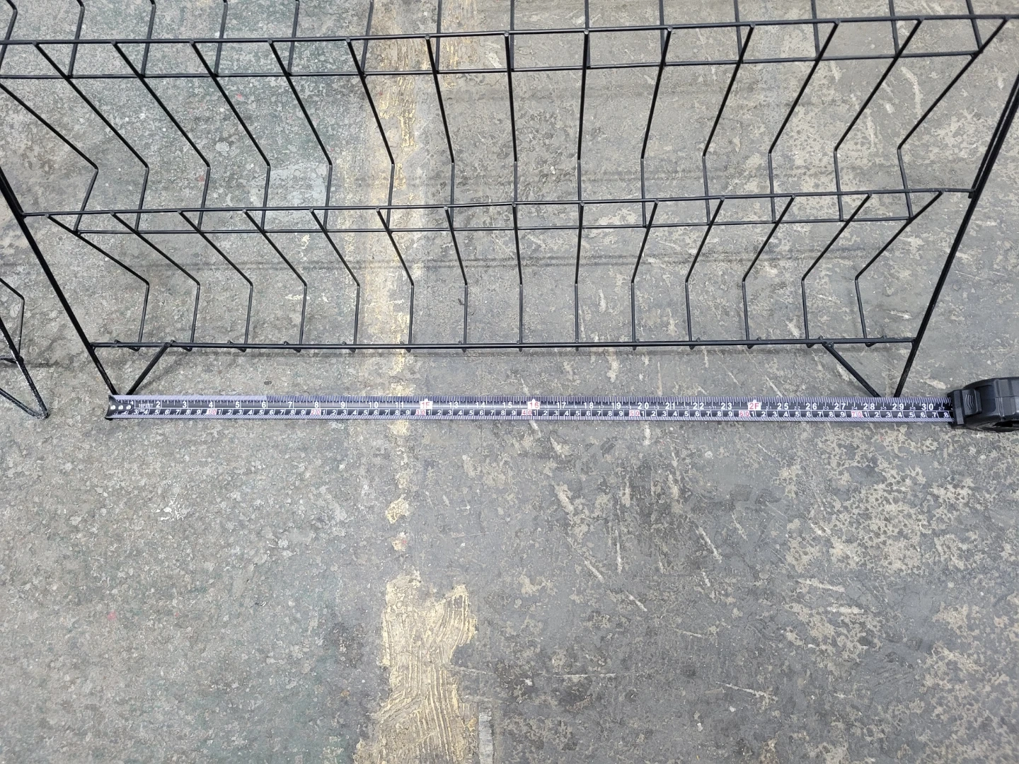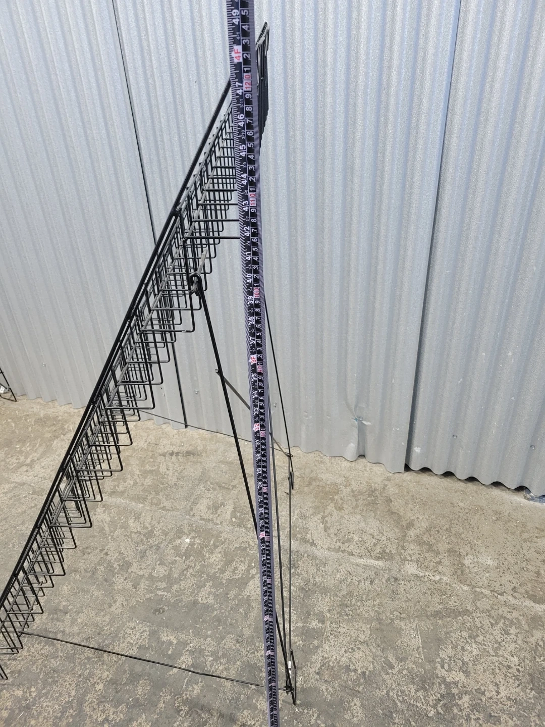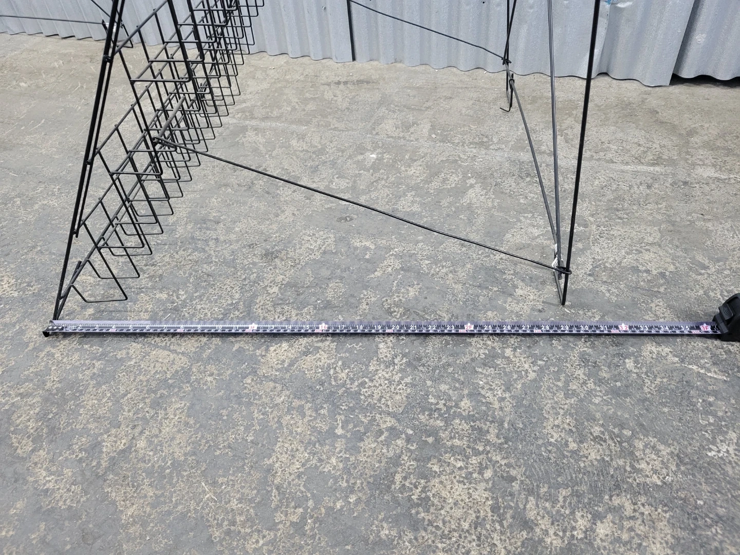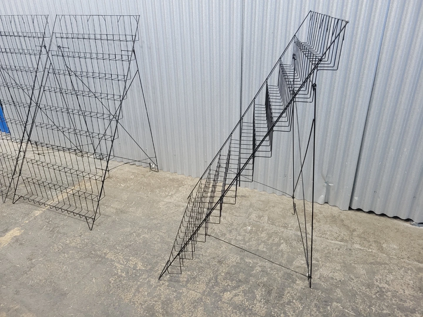 This is a black wire display rack with three sections. Each section has multiple shelves. It's great for retail or event displays! Wire construction.