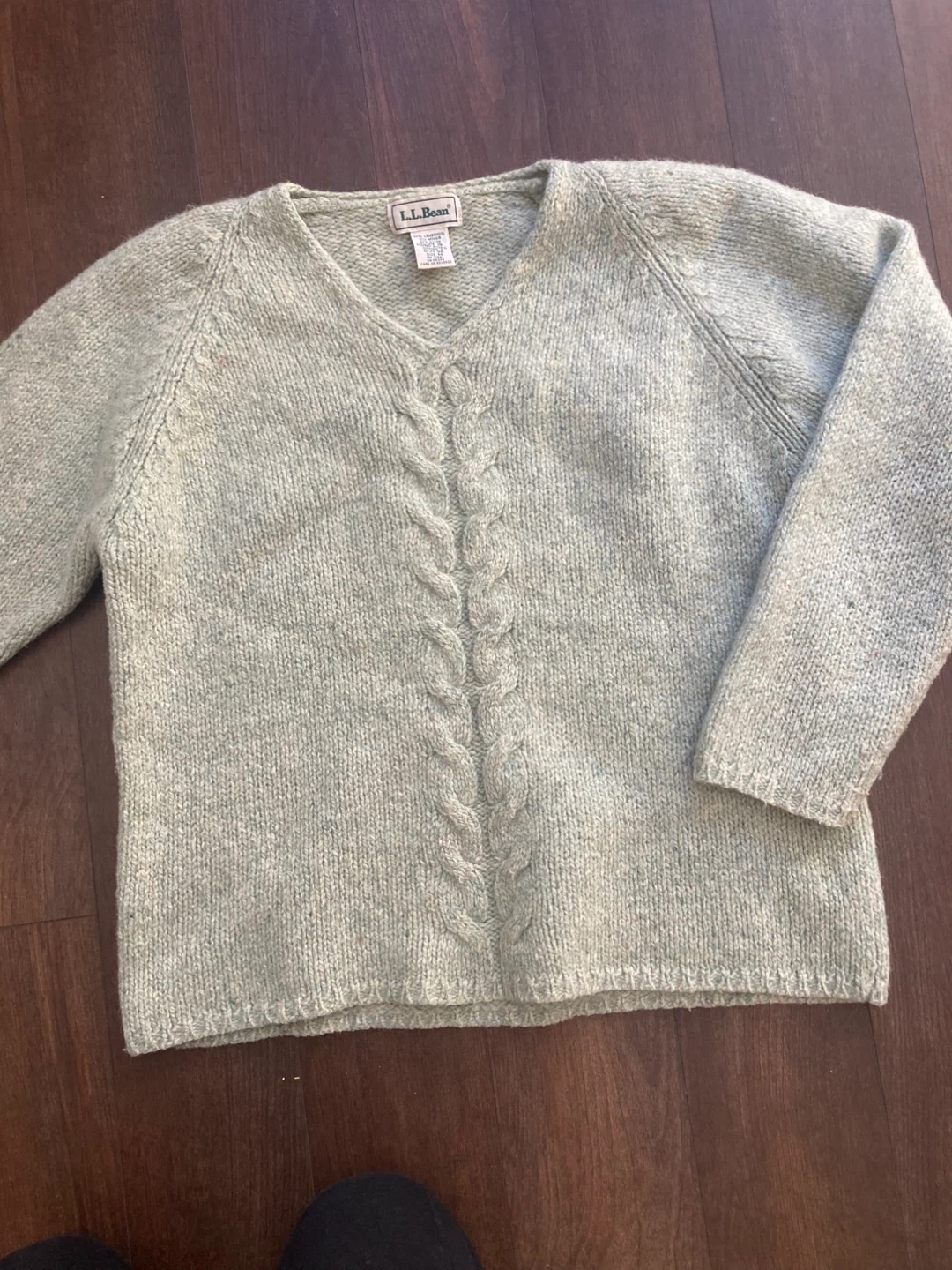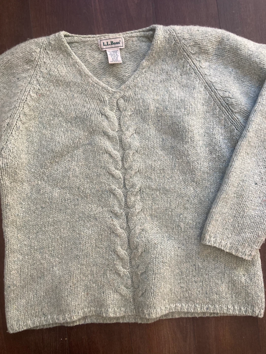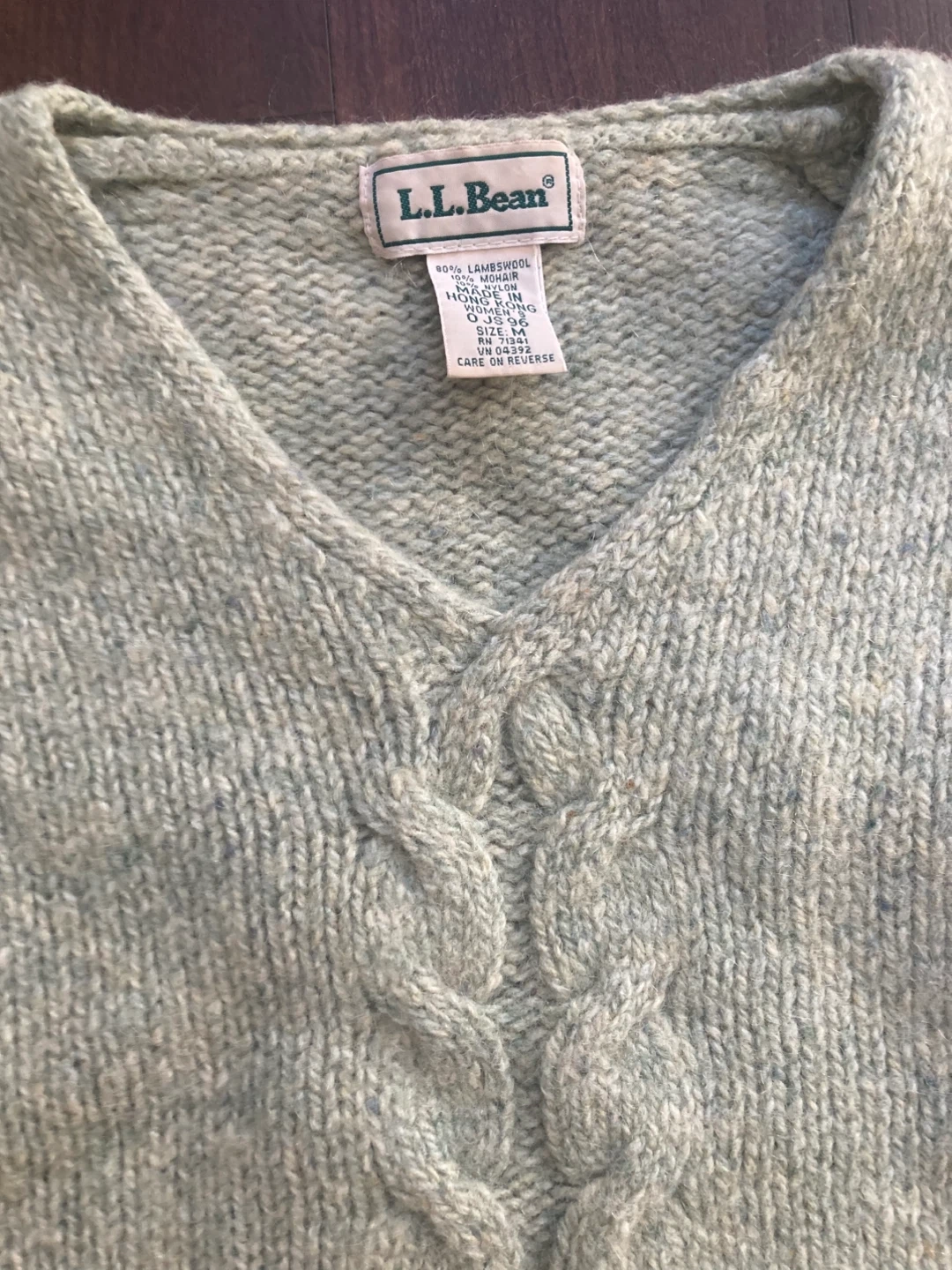 This L.L.Bean sweater is made from 90% lambswool, 10% mohair, and 10% nylon. It's a women's size medium with a classic cable knit front design. Impeccable vintage condition. Perfect for staying warm on chilly days!
