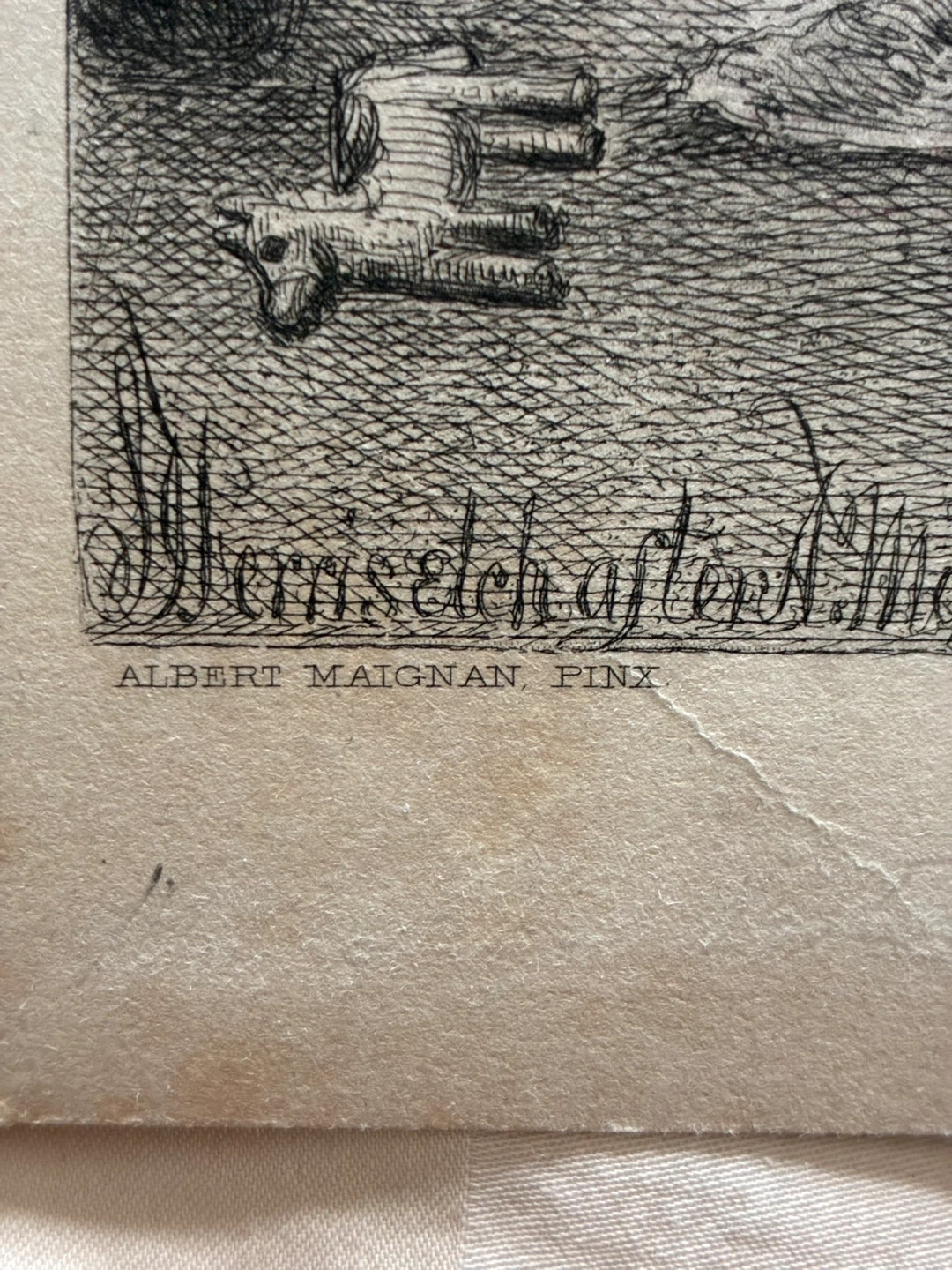 The print shown in the image is an interpretation of Maignan's work, an engraving by Stephen James Ferris an American artist done in 1890s