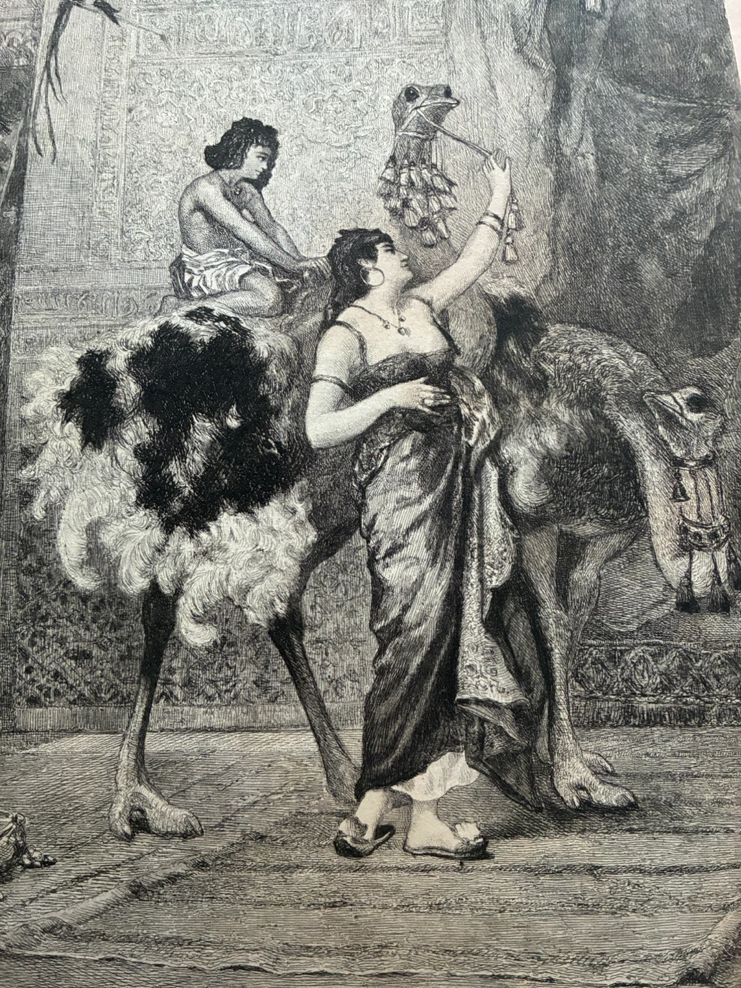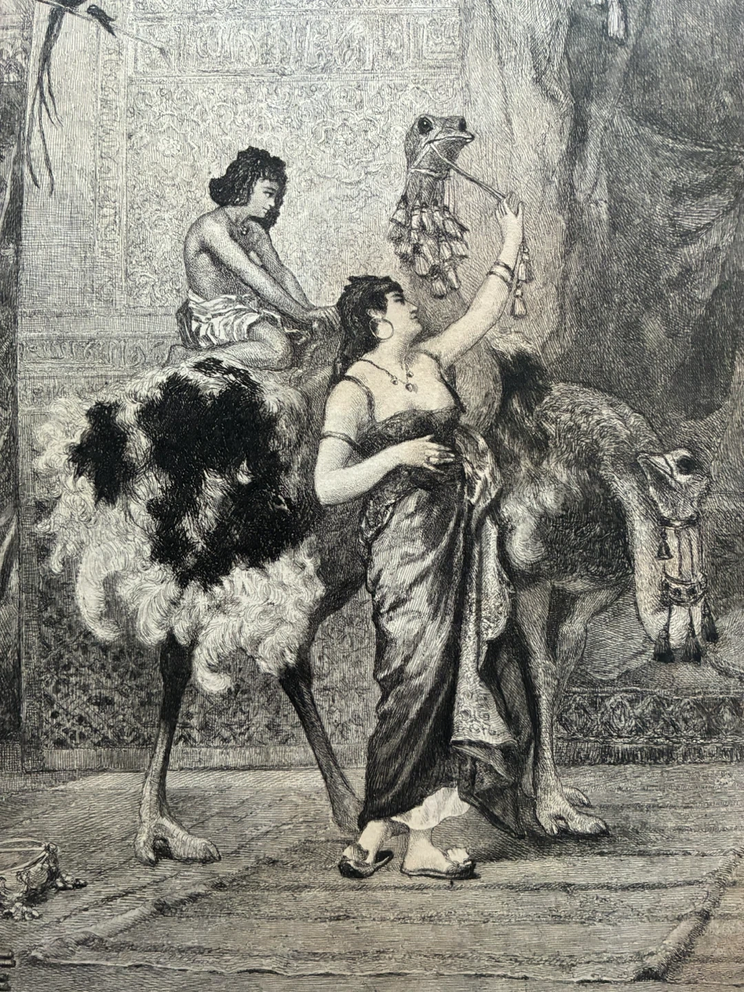 Antique orientalist 1890s print The Education of the Last King of Granada Print SJ Ferris ostrich
