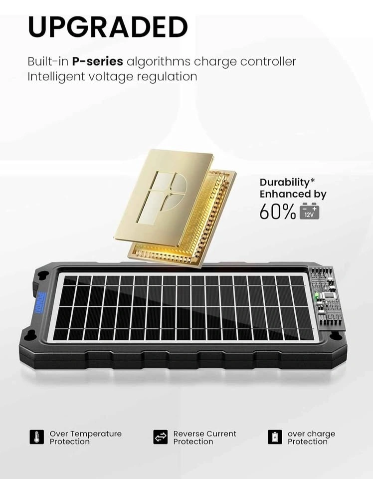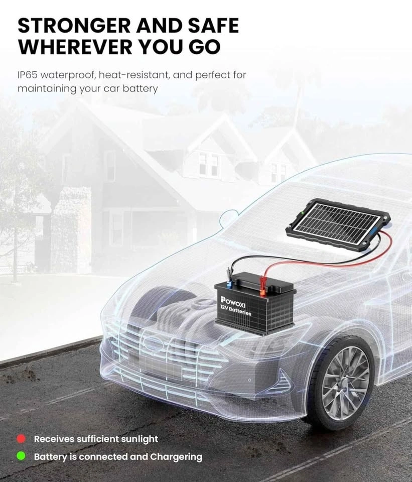 POWOXI 9W Solar Battery Trickle Charger Maintainer - 12V