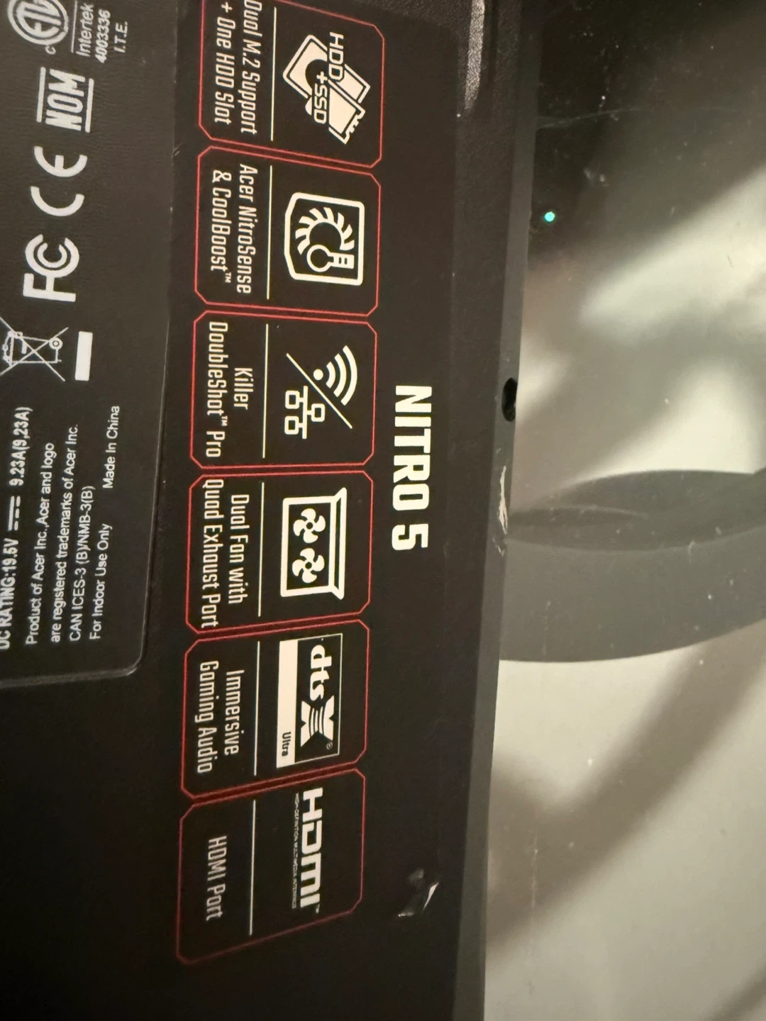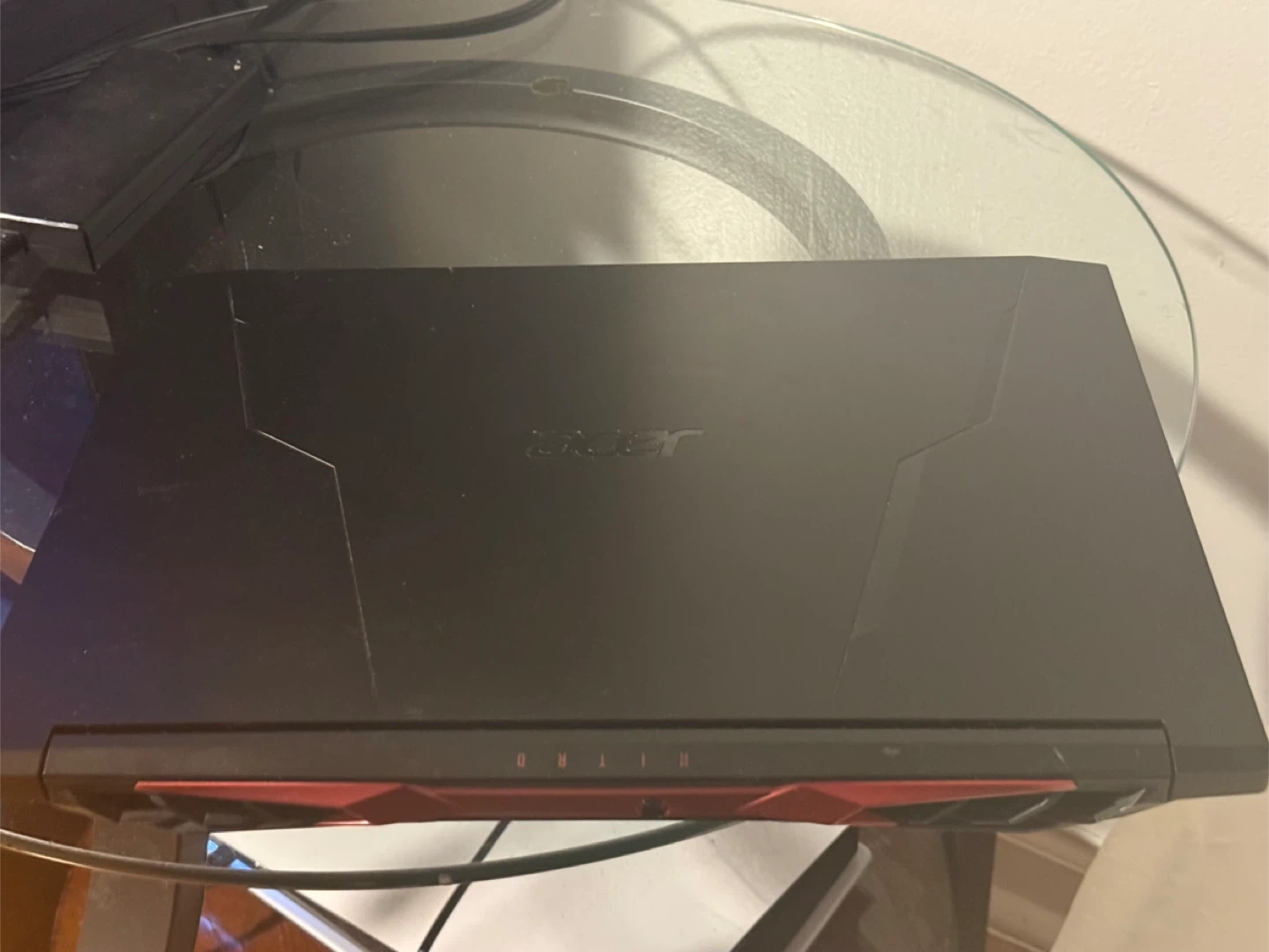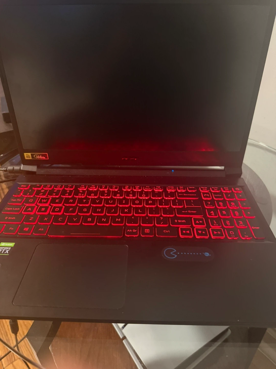 This is an Acer Nitro 5 gaming laptop. It's powered by an Intel Core i7 processor and an NVIDIA GeForce 3060 RTX graphics card. The keyboard features vibrant red backlighting for an immersive gaming experience. It includes HDMI and USB ports for connectivity.