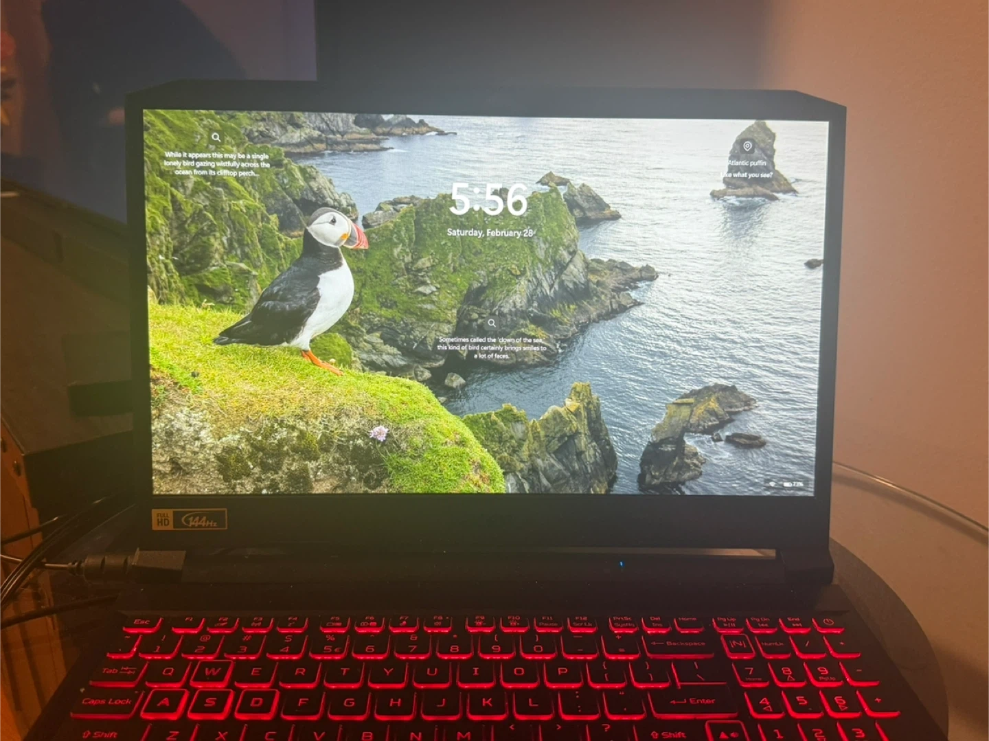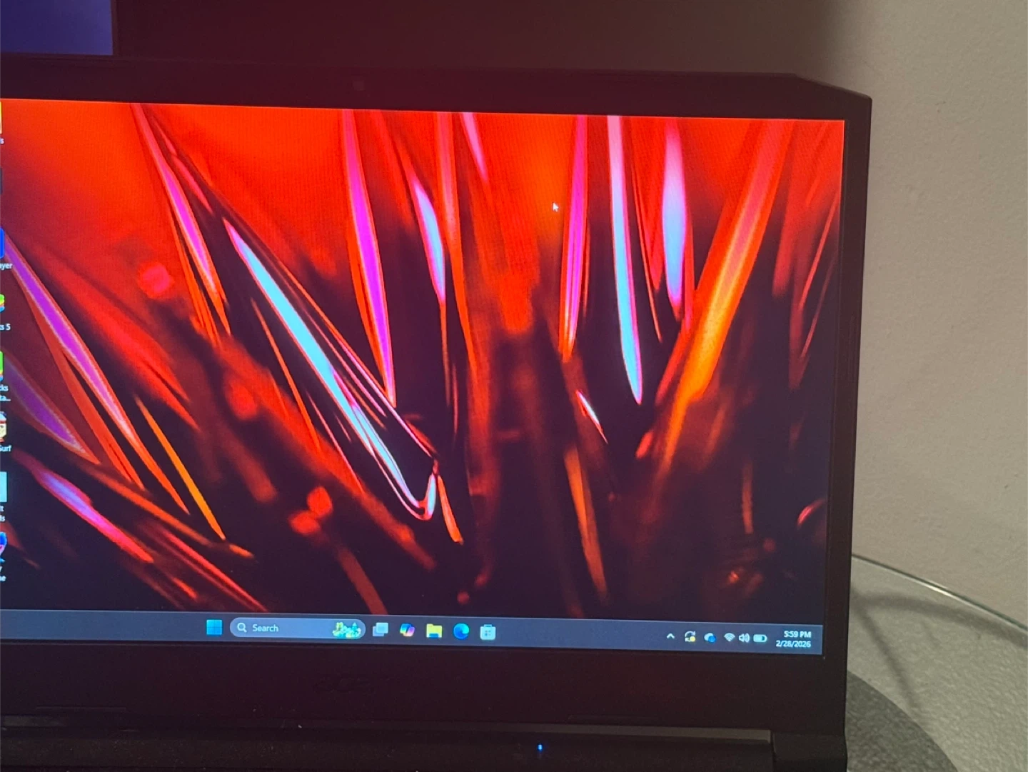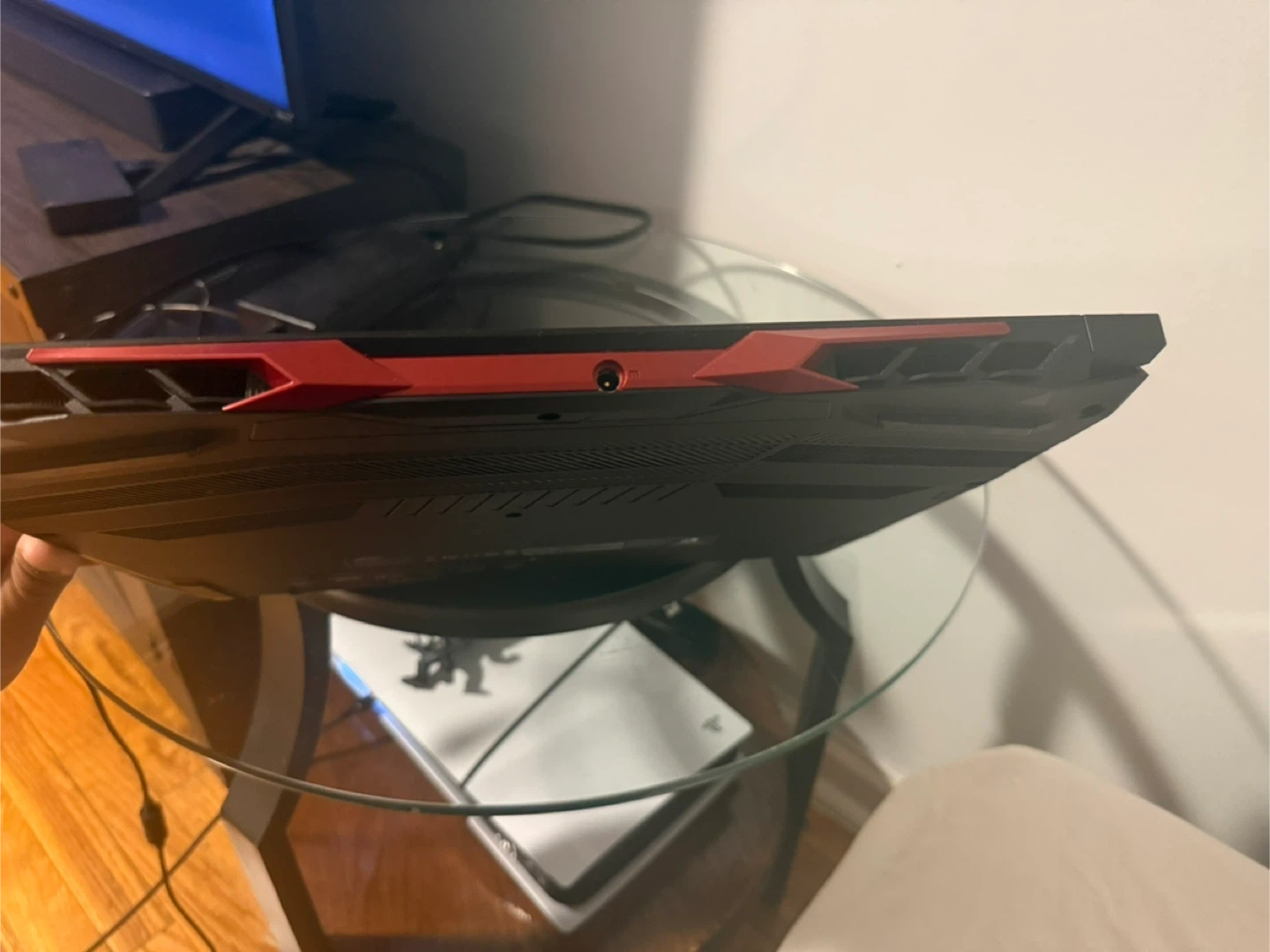 This is an Acer Nitro 5 gaming laptop. It's powered by an Intel Core i7 processor and an NVIDIA GeForce 3060 RTX graphics card. The keyboard features vibrant red backlighting for an immersive gaming experience. It includes HDMI and USB ports for connectivity.