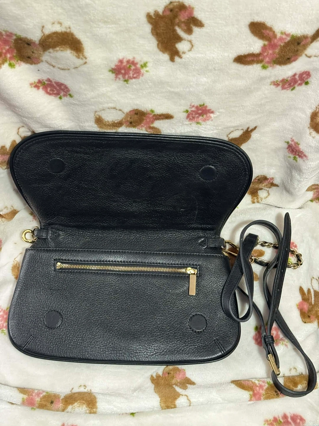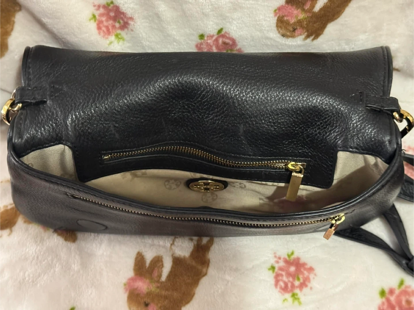 Tory Burch Amanda Convertible bag for sale. This bag is easily convertible to a clutch or crossbody style. It’s in excellent used condition, with a slight stain on the inside lining. It fits a long wallet, a big phone, lipstick, and car keys.