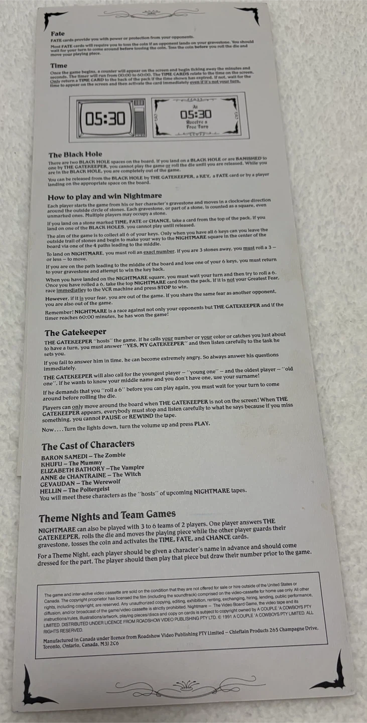 Relive the nostalgia with this vintage 1991 board game called Nightmare, a video board game for 3-6 players aged 12 to adult. This game, is in good condition and ready to bring hours of suspenseful entertainment. This interactive board game features a video component that enhances the gameplay, creating a unique and immersive experience.