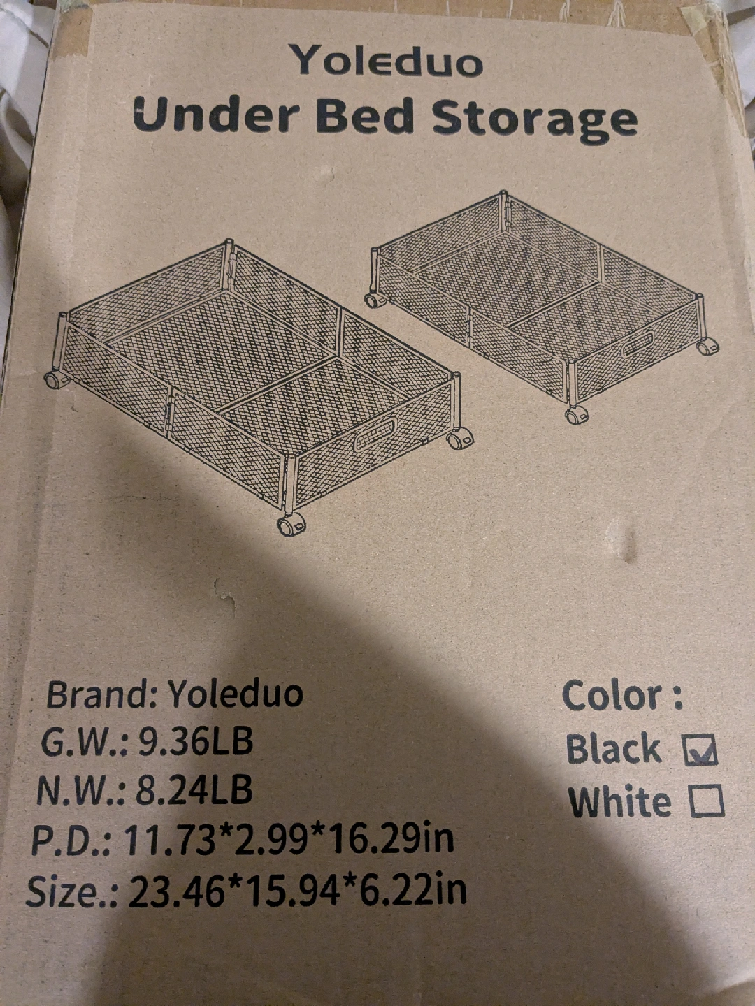 Keep your space tidy with this Yoleduo under bed storage unit! It's black and comes with the original box.
