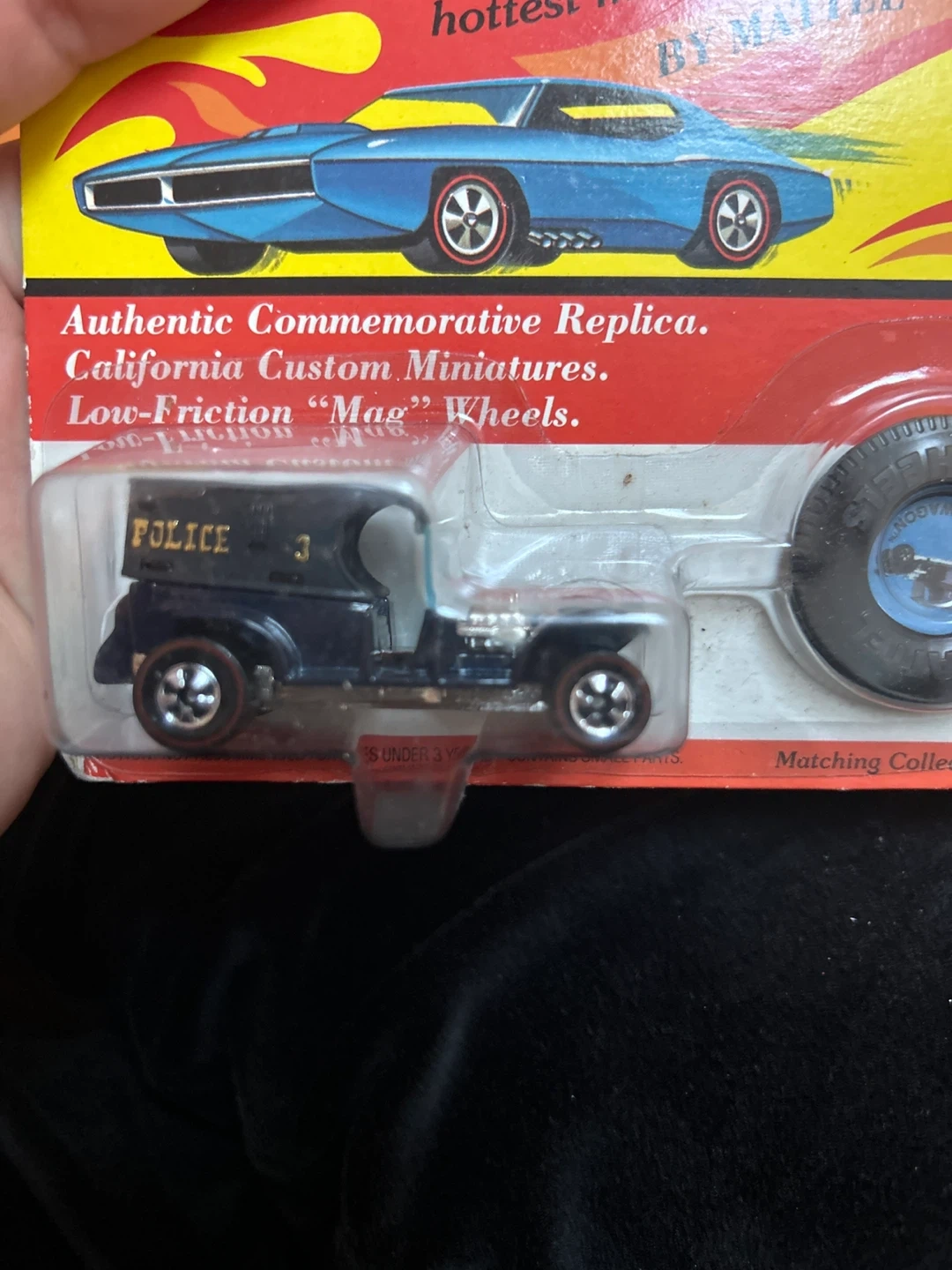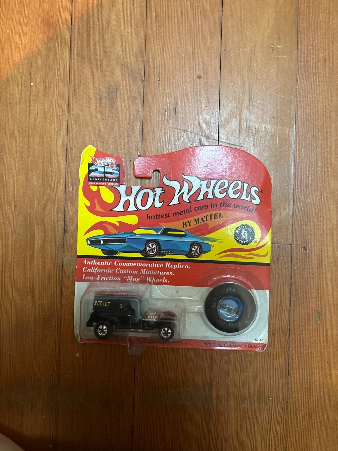 This is an authentic commemorative replica Hot Wheels police car. It features California Custom Miniatures and low-friction "Mag" Wheels. This collectible toy is made of metal. 1993