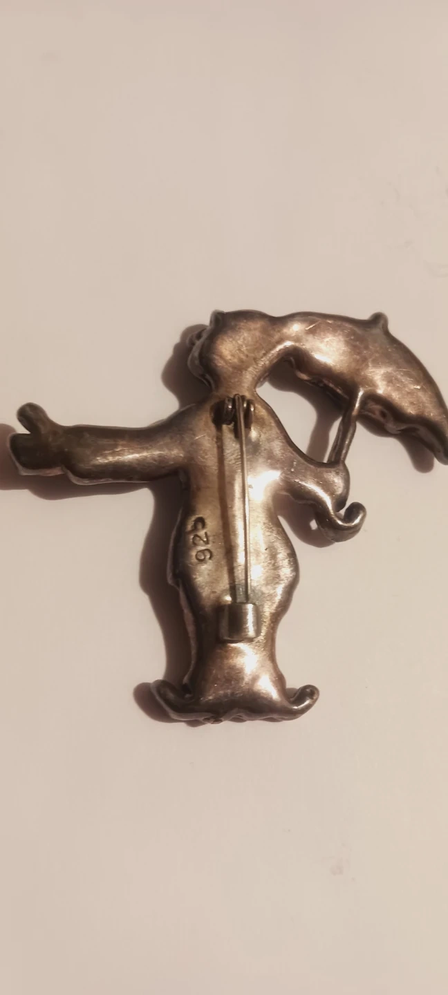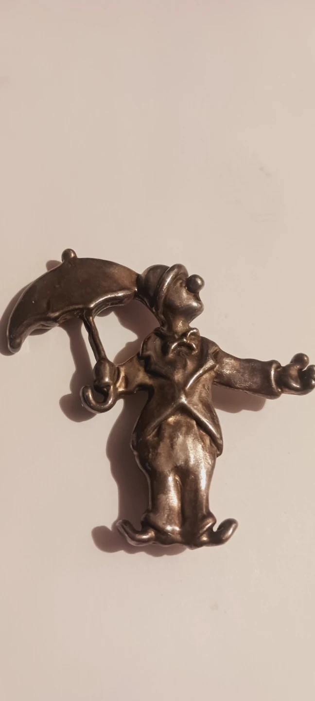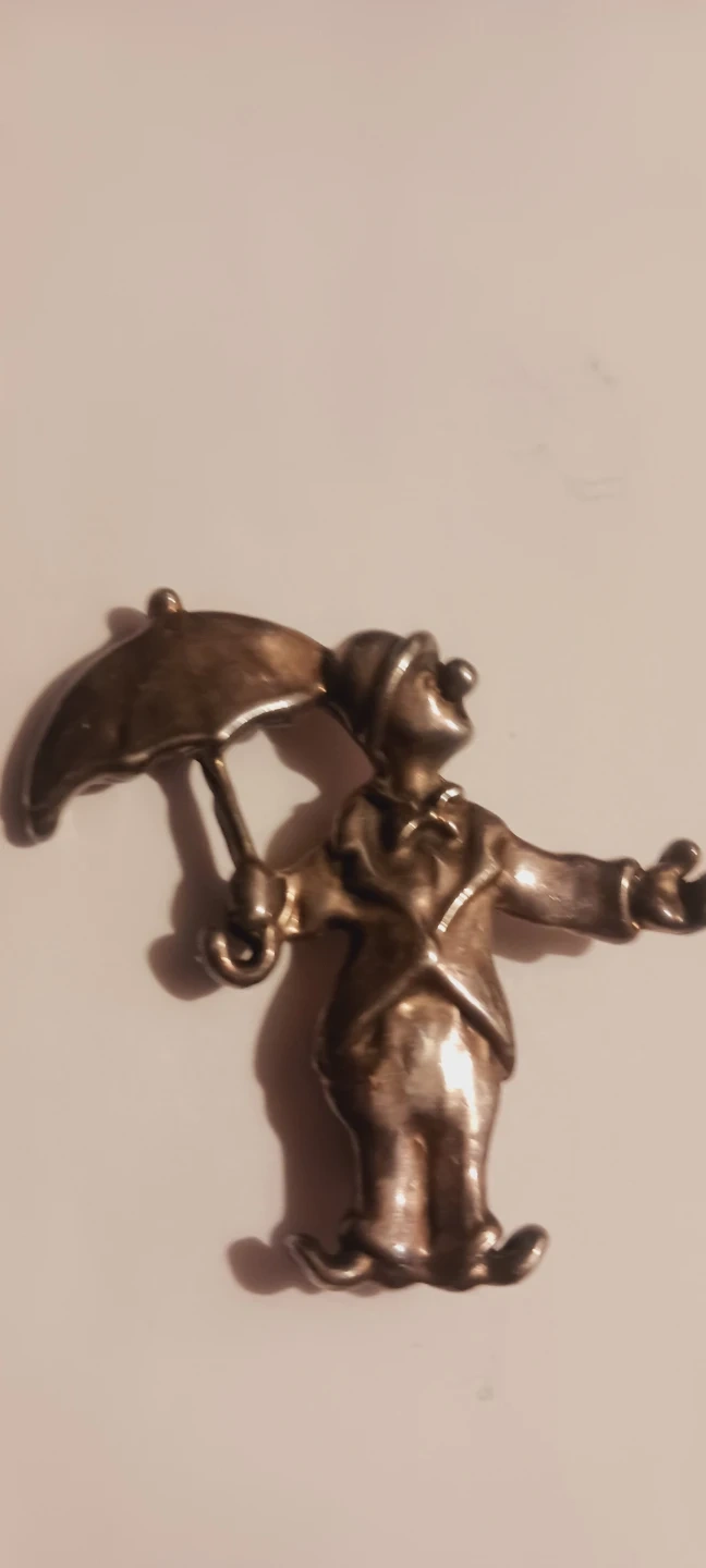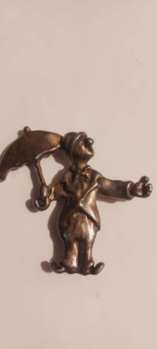 featuring a clown with an umbrella. The back is marked "925". It's a charming piece for any collector!!! 2.5"×2.5". Excellent condition. ALL MY PRICES ARE NEGOTIABLE !!