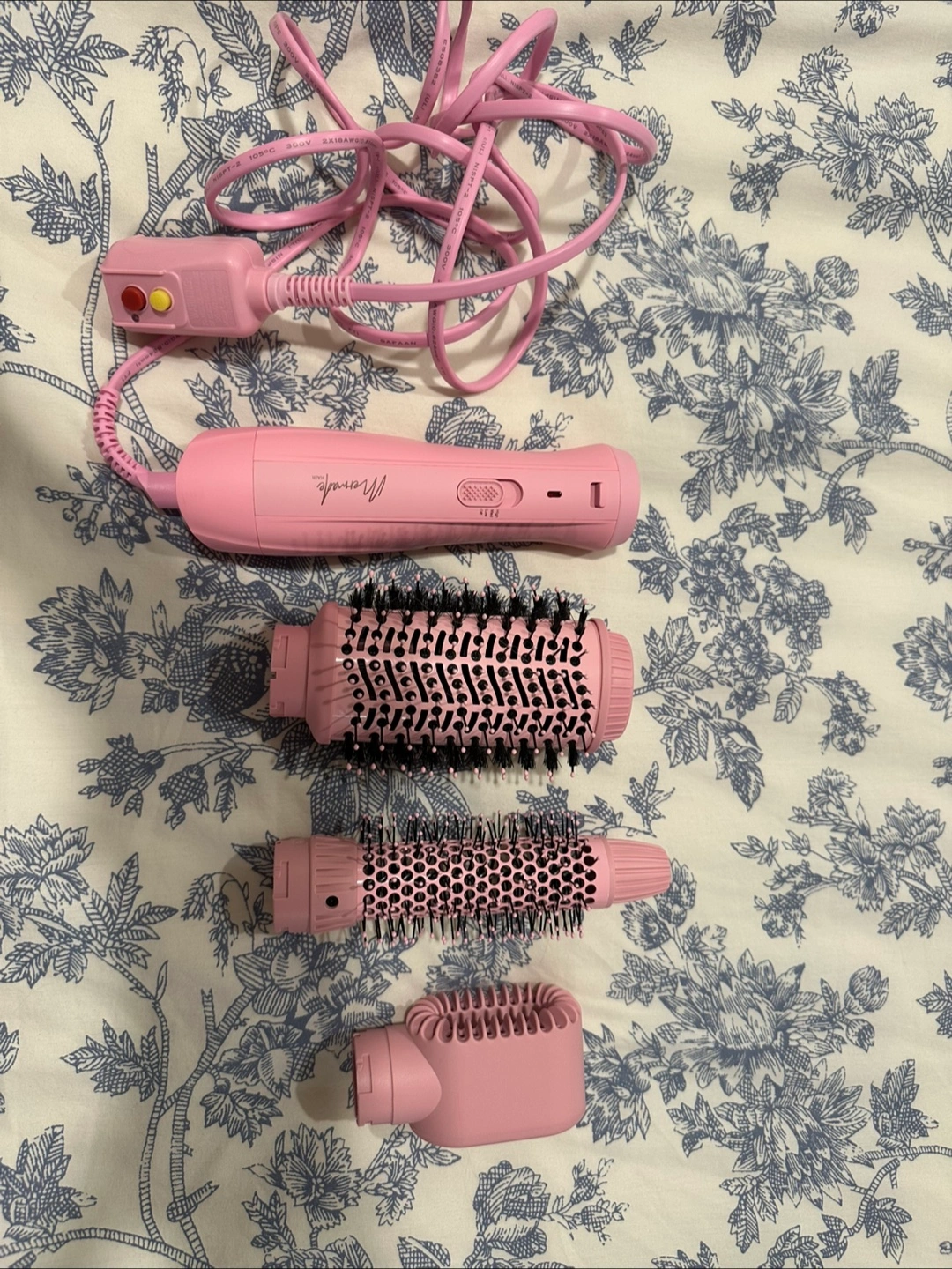 Selling a Mermade Hair Blow Dry Brush Kit in pink! It includes all the attachments shown in the pictures. Perfect for styling your hair at home