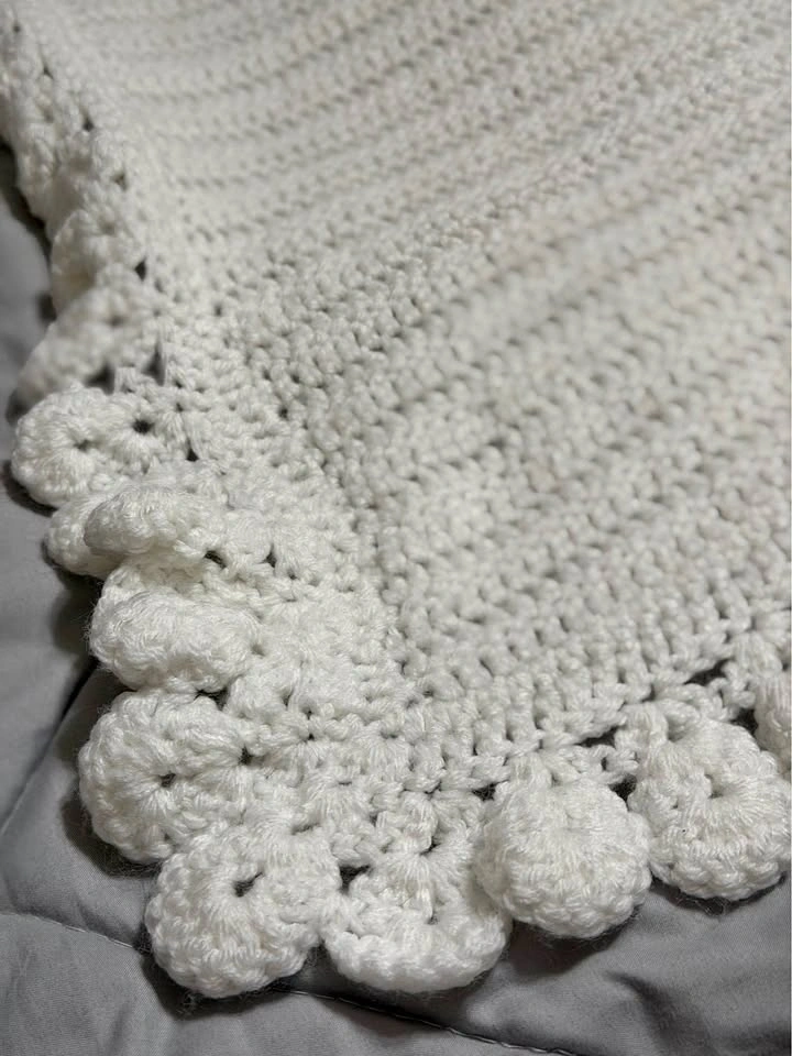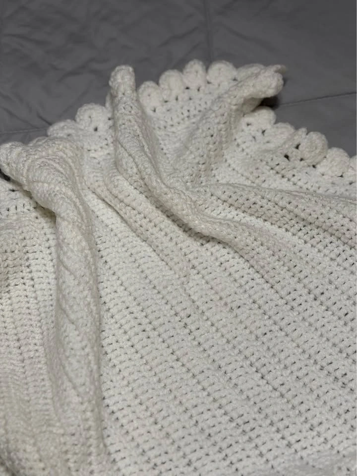 Handmade Crochet Baby Blanket | Classic White with Scalloped Bor