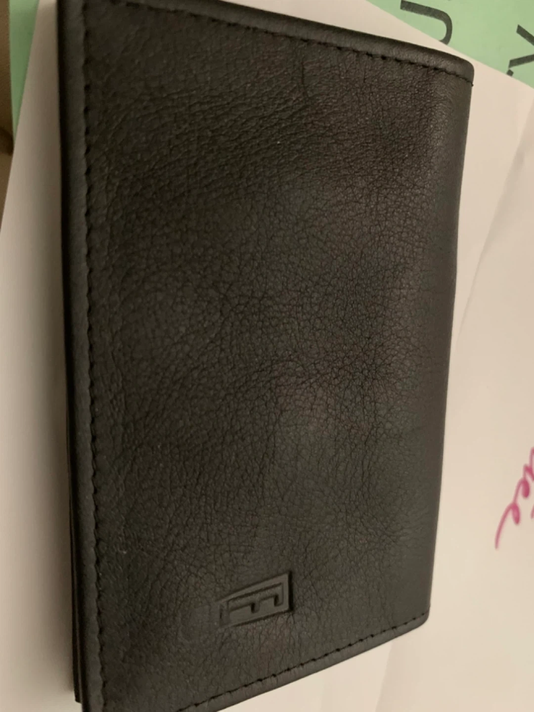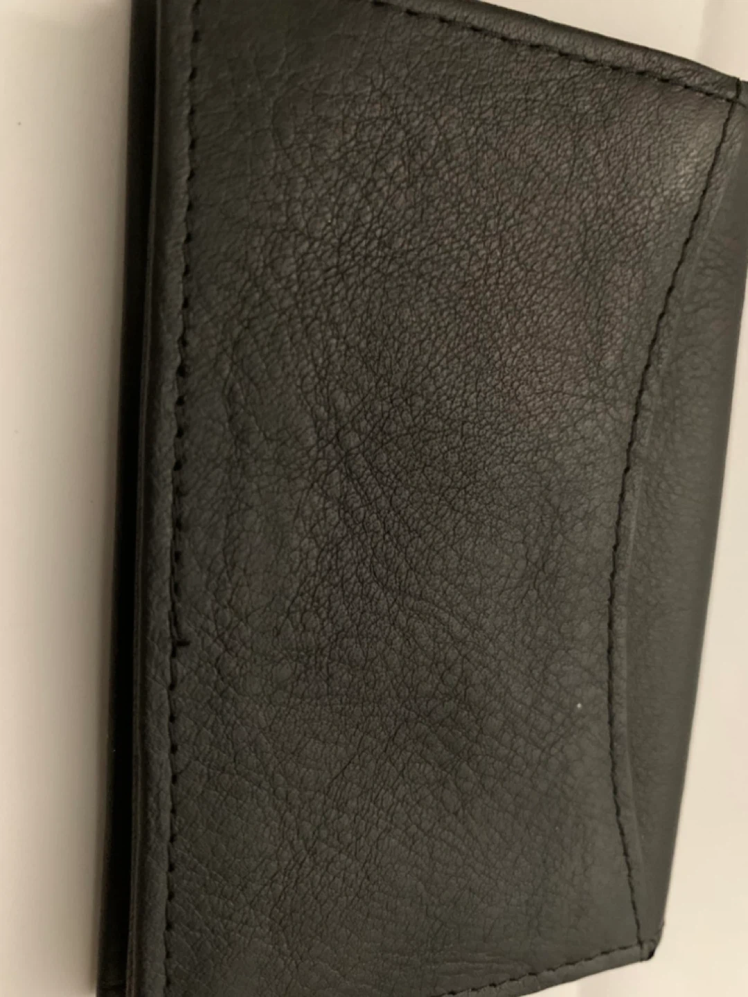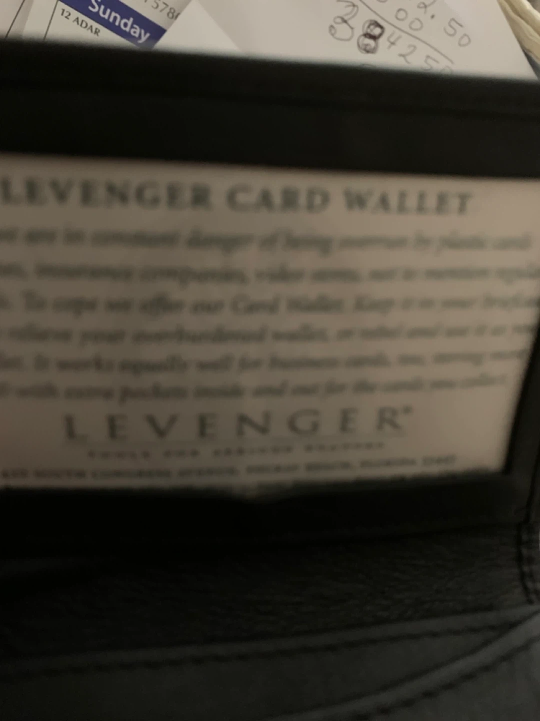 This is a Levenger card wallet. It's made of black leather and includes multiple pockets inside and out for cards. This wallet is useful for organizing business cards, credit cards, and insurance cards.