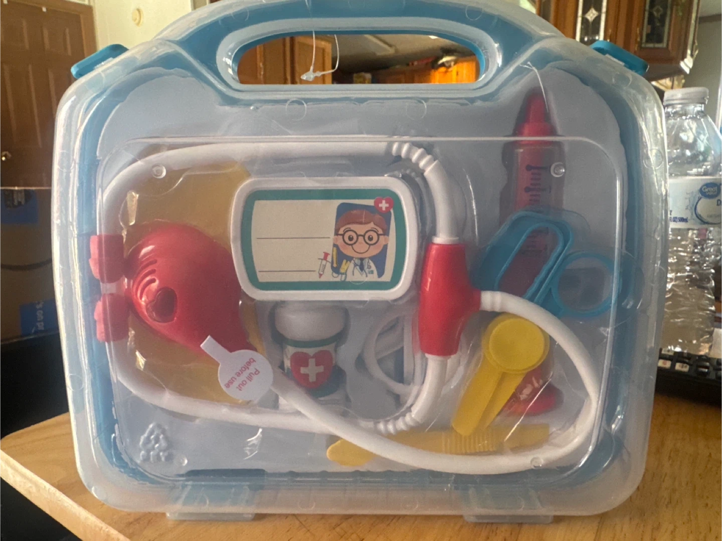 10This is a cute doctor play set for kids, complete with a carrying case! It includes a stethoscope, syringe, and other medical tools for imaginative play New , never opened. Pick up or meet in Beecher / Crete area