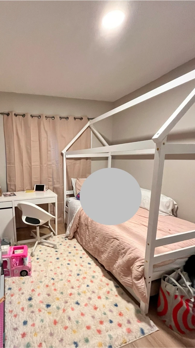 Selling a kids twin house white bed frame with trundle. It's in good condition. Needs cleaning! Mattress not included. For pick up only.