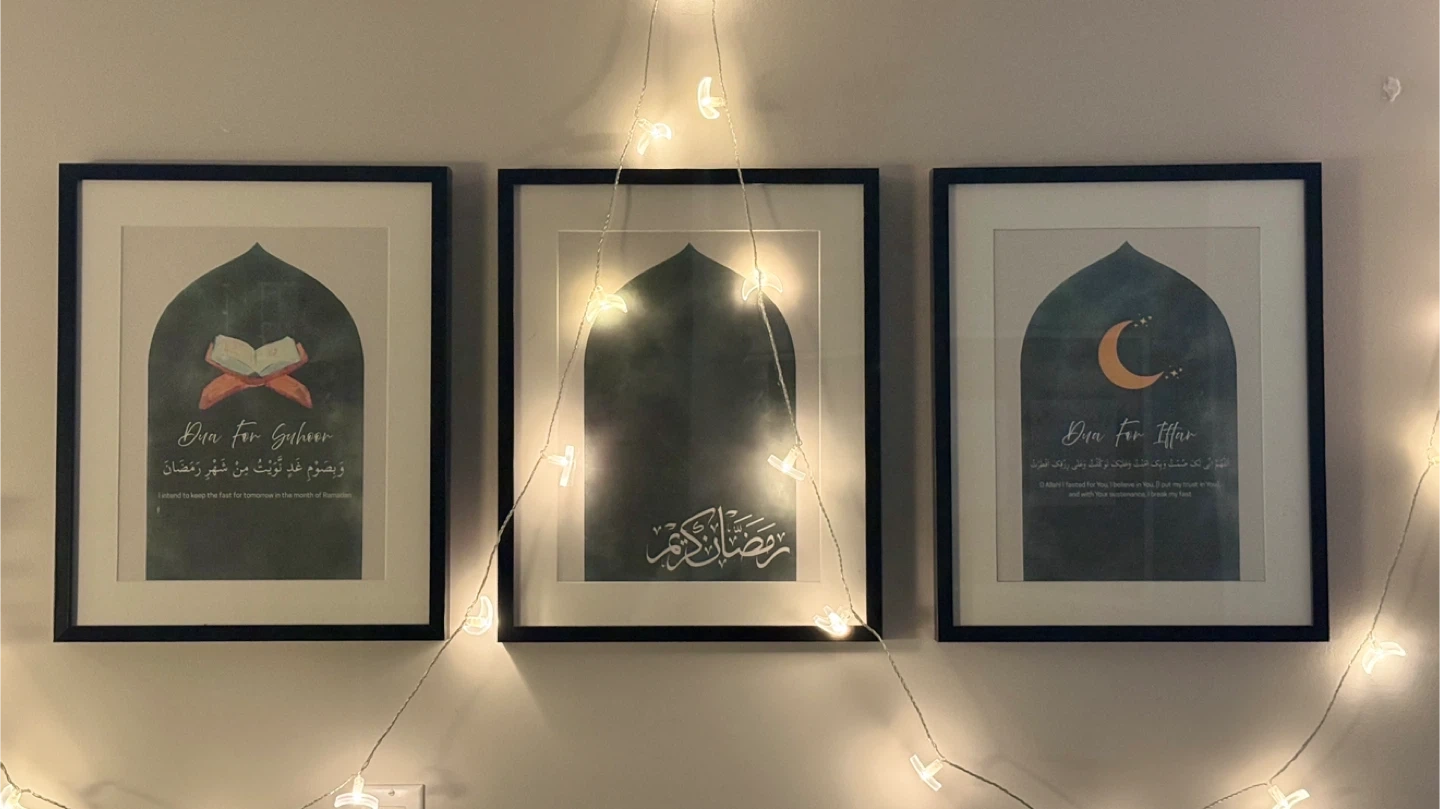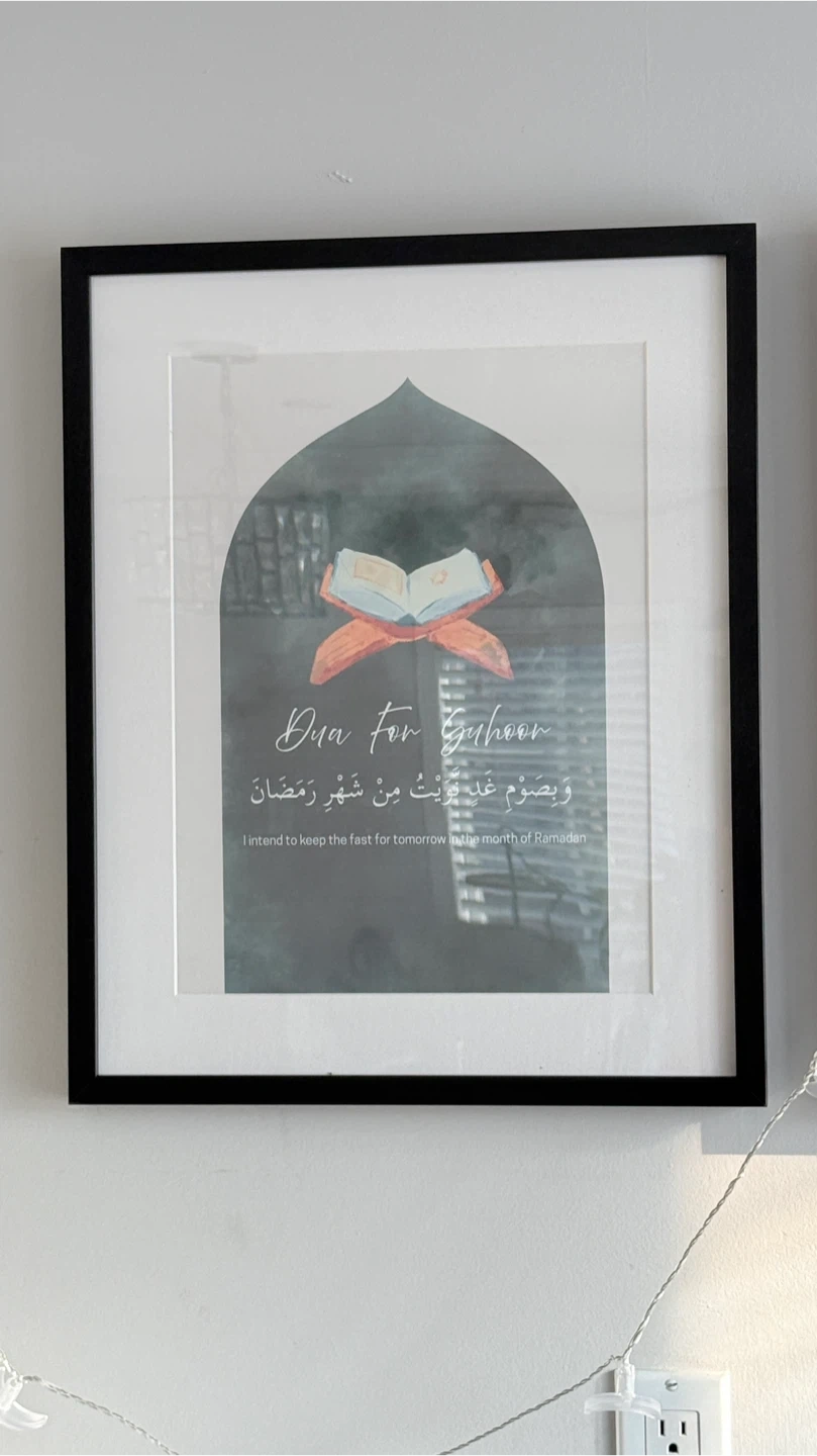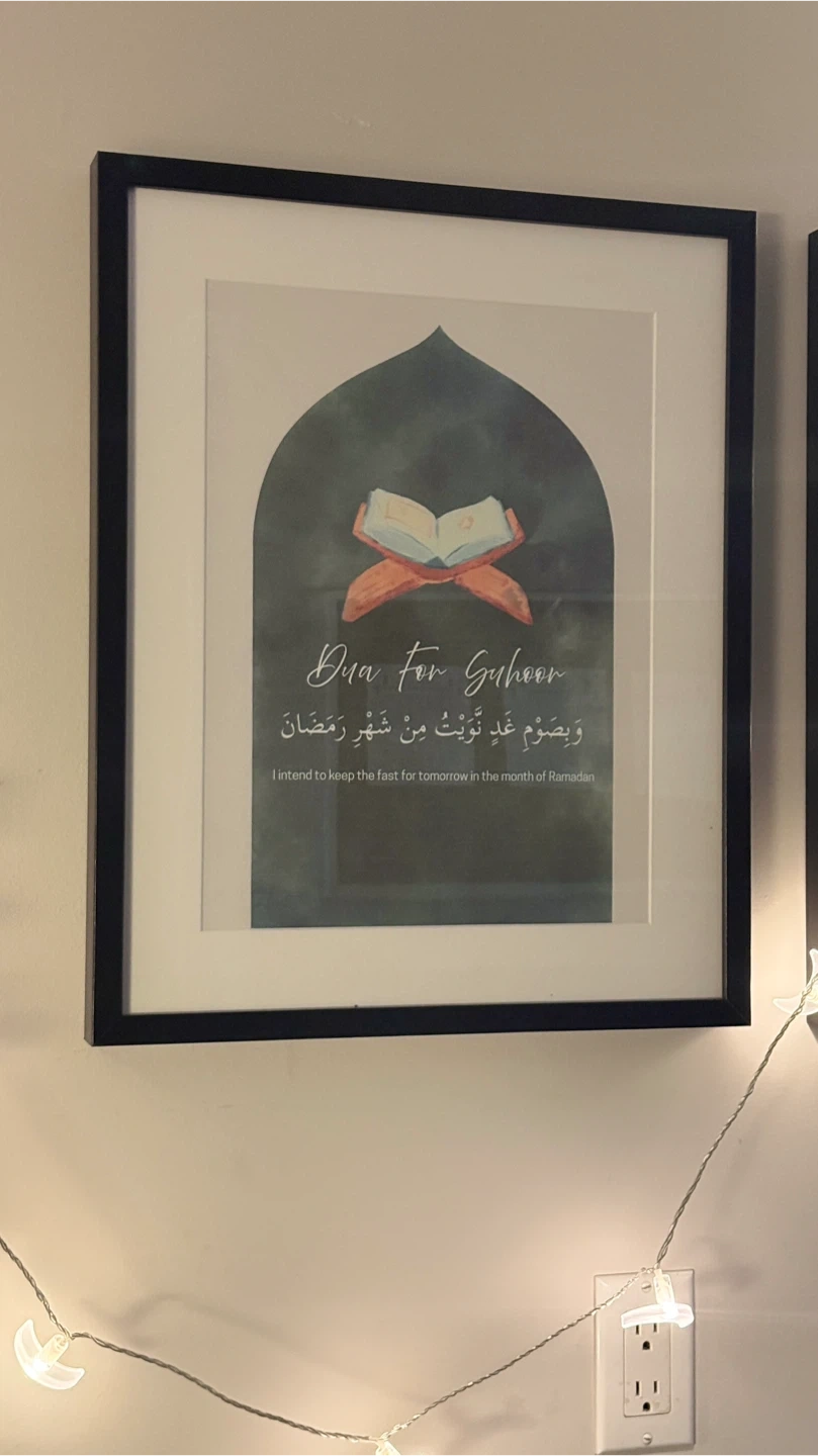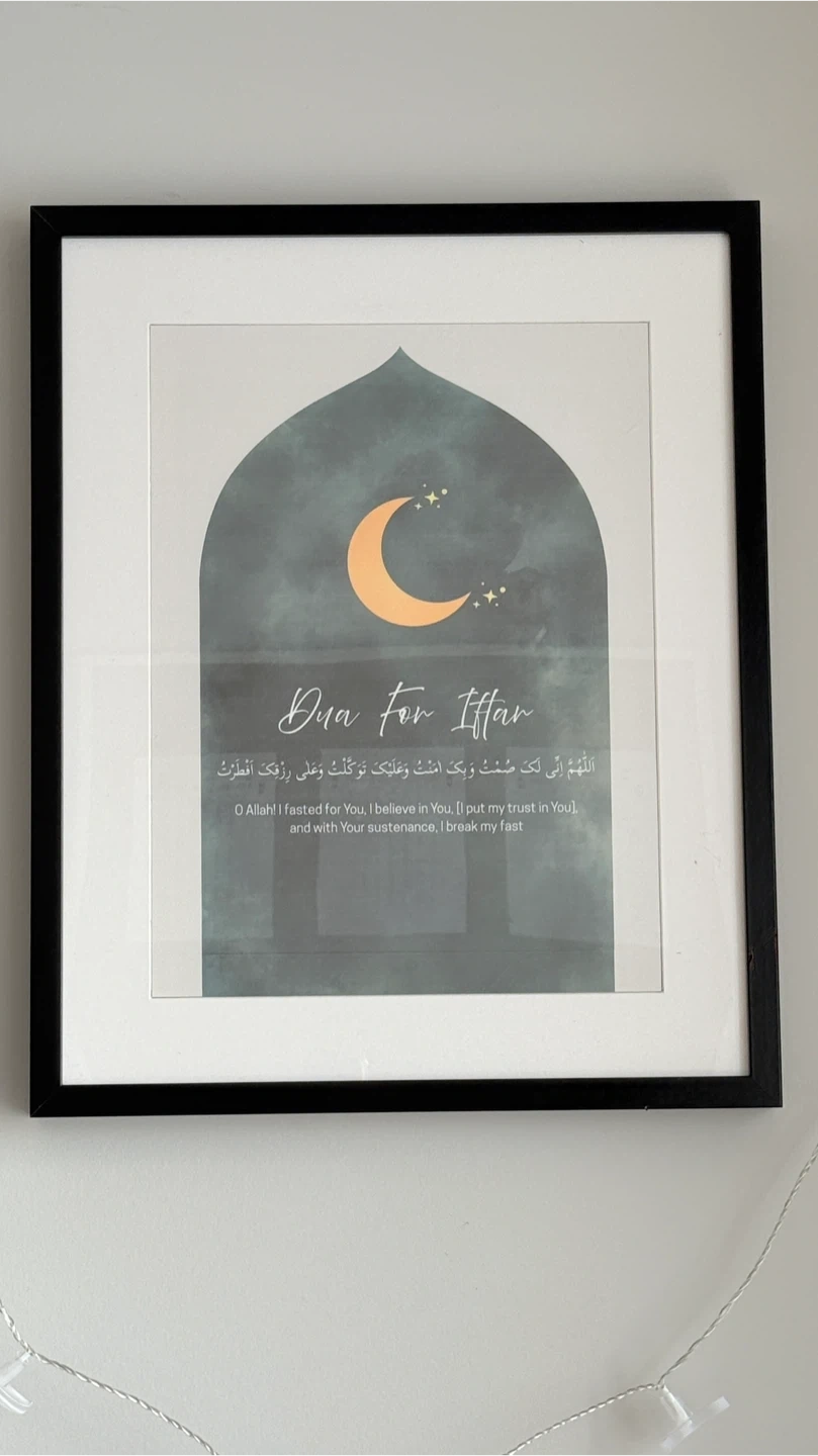These framed prints feature Islamic dua for Suhoor and Iftar, plus Ramadan Kareem calligraphy. They're perfect for adding a touch of faith to your home during the holy month. Each print comes in a black frame.